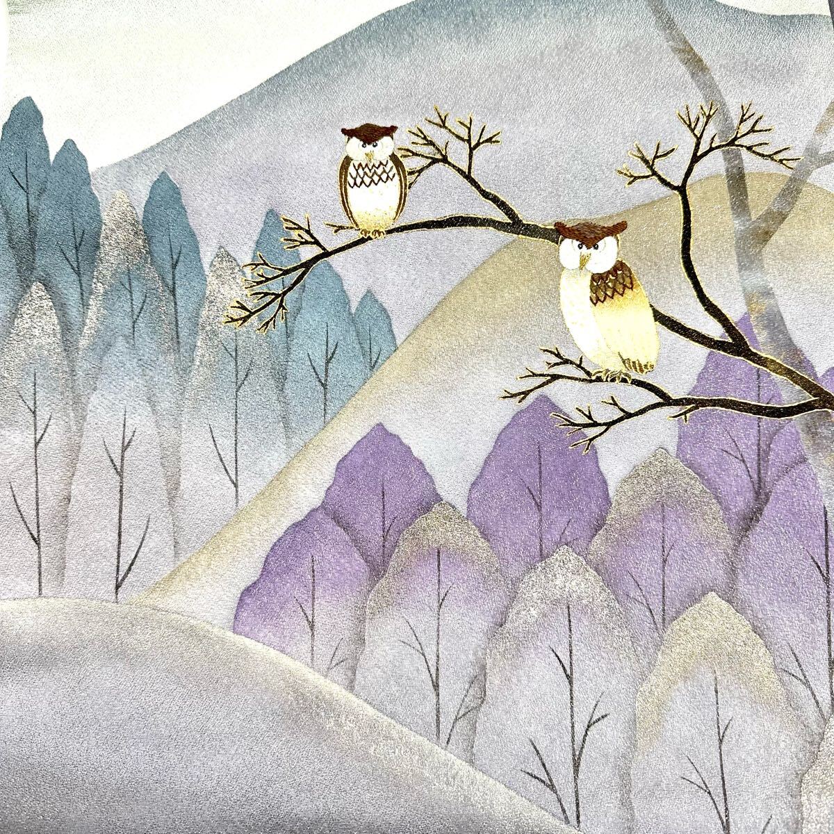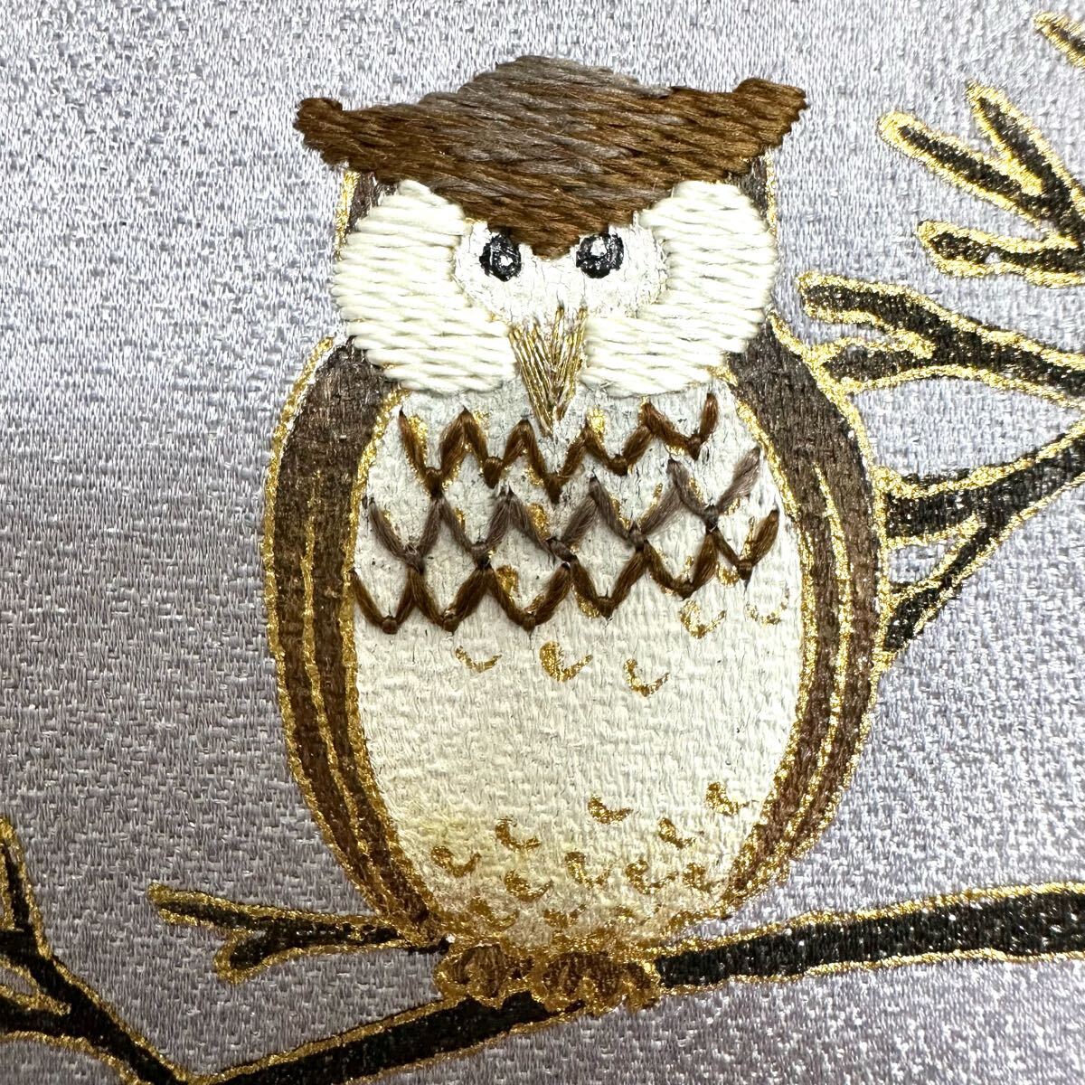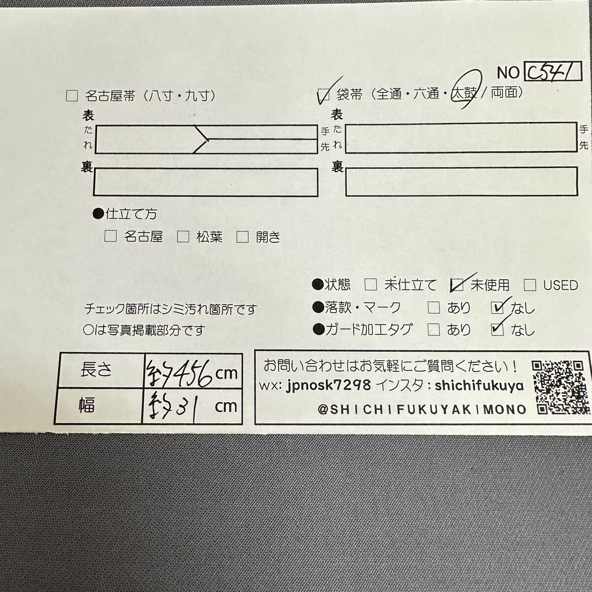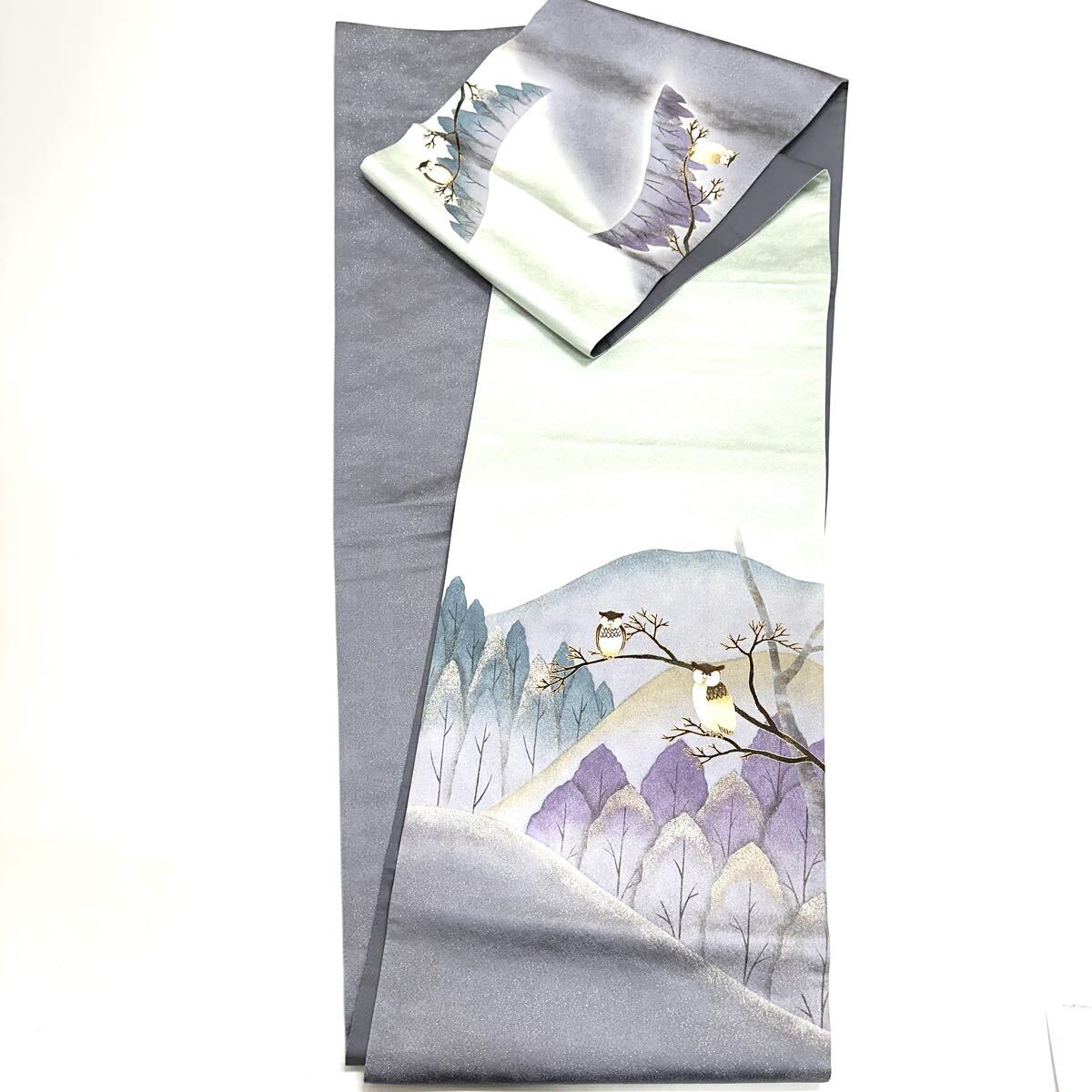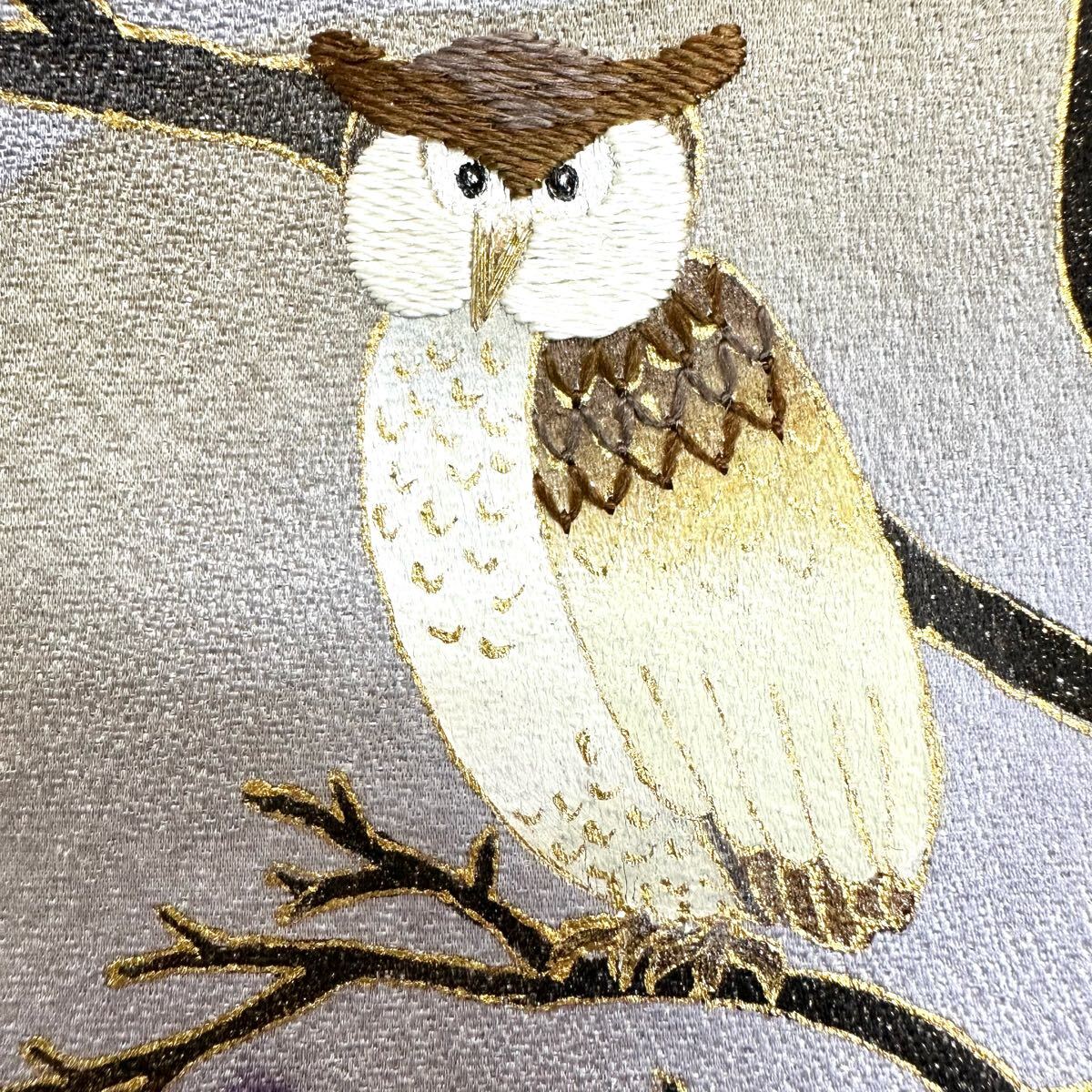 【七福】c541 逸品 高級品 正絹 袋帯 太鼓柄 梟 金糸 銀糸 豪華