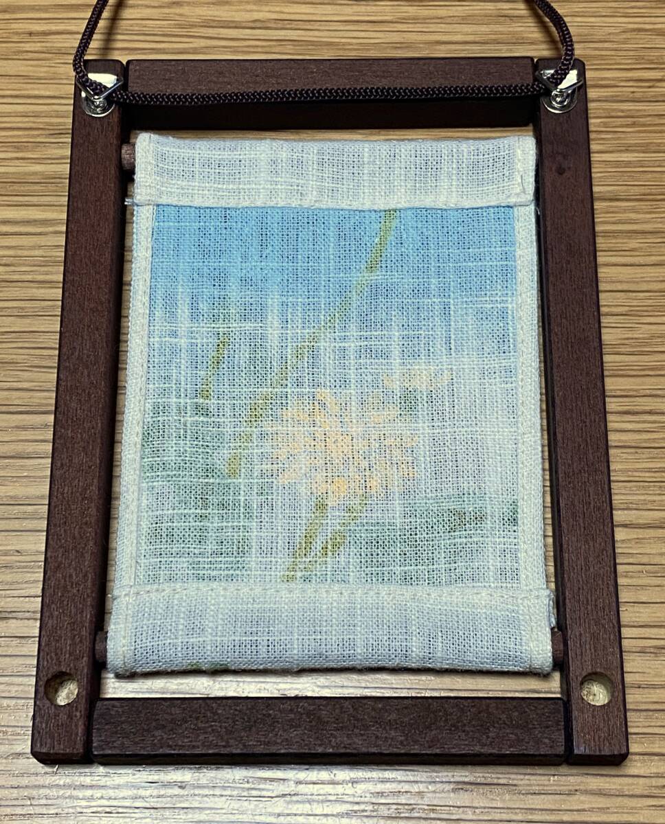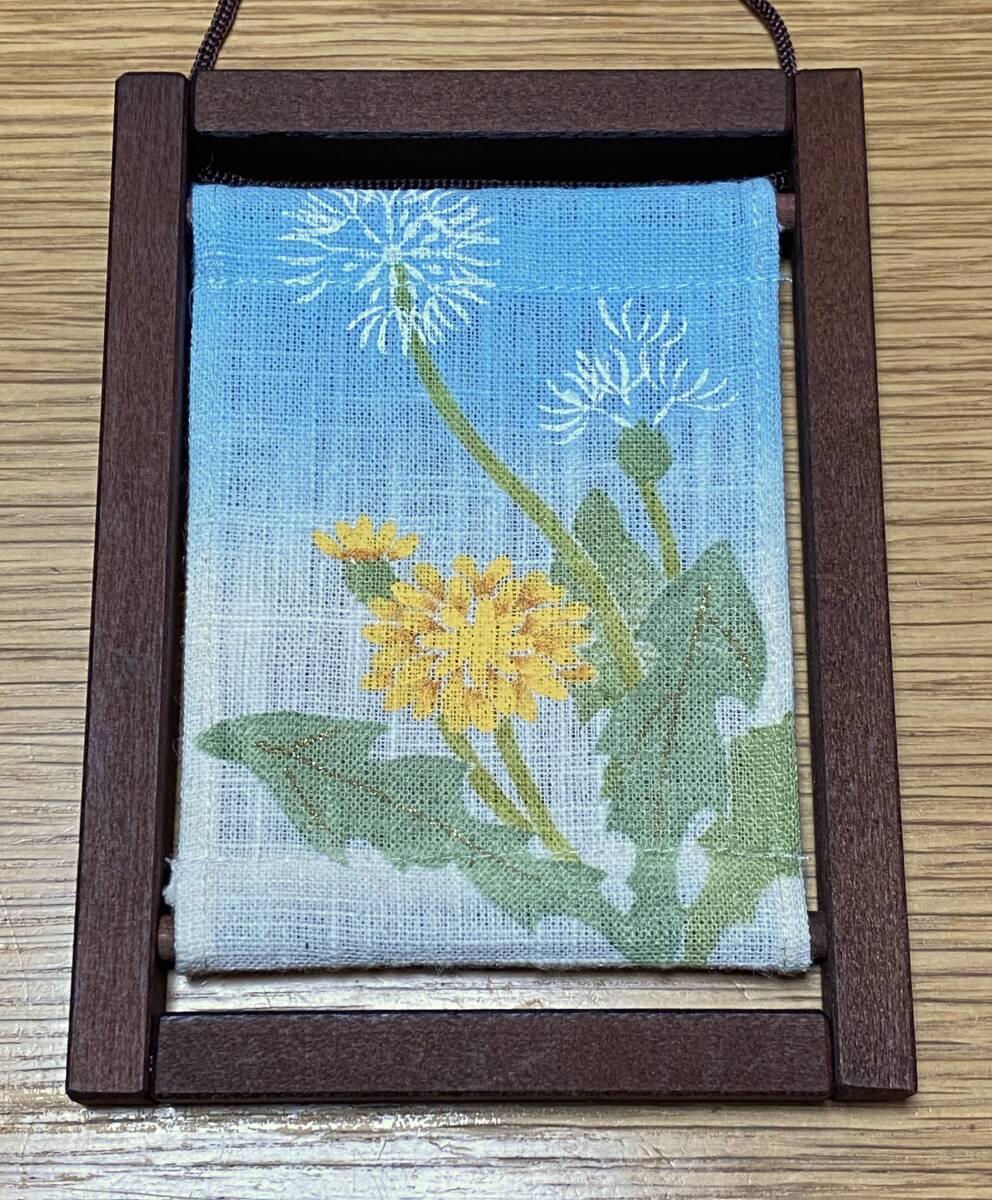 京都洛柿庵 ミニ木枠タペストリー タンポポ たんぽぽ 花 春 フレーム 壁掛け スタンド 麻 ブラウン 高さ約16cm 幅約12cm