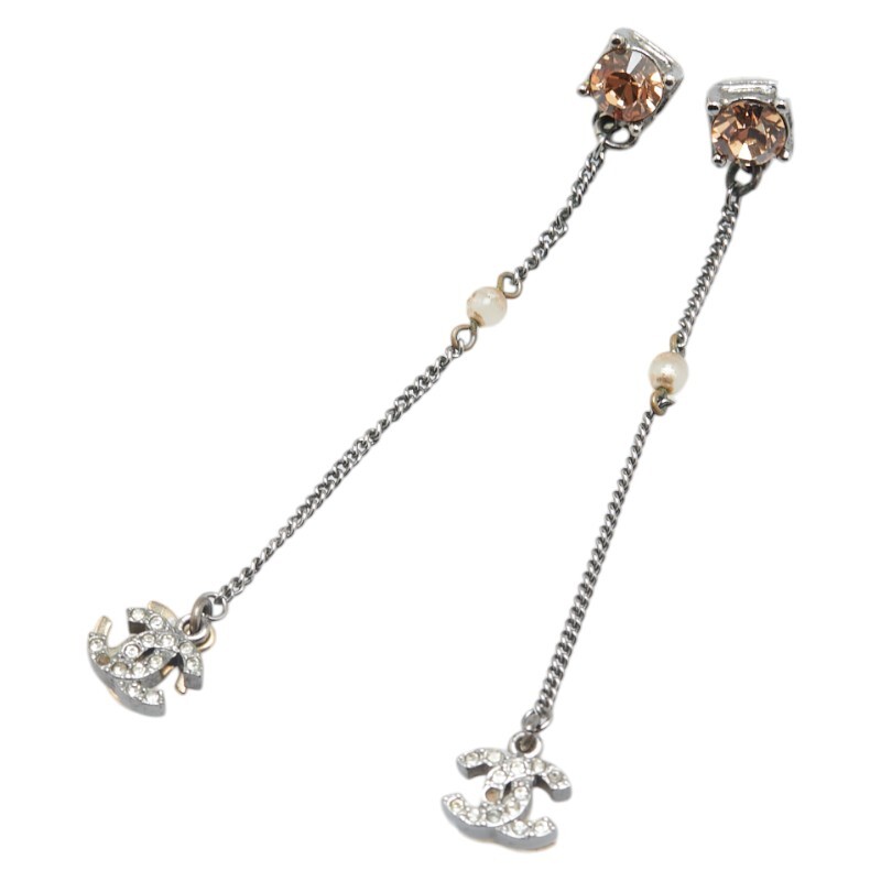 シャネル ココマーク ラインストーン スイングピアス シルバー メタル レディース CHANEL 【中古】