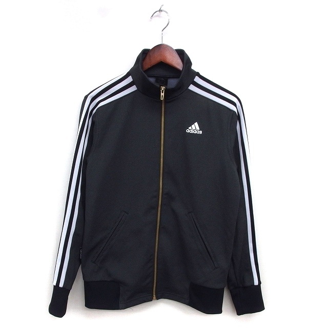 アディダス adidas 国内正規品 climalite ジャージ トラックジャケット リブ スリーストライプス ロゴ刺繍 ジップアップ S 黒 ブラック