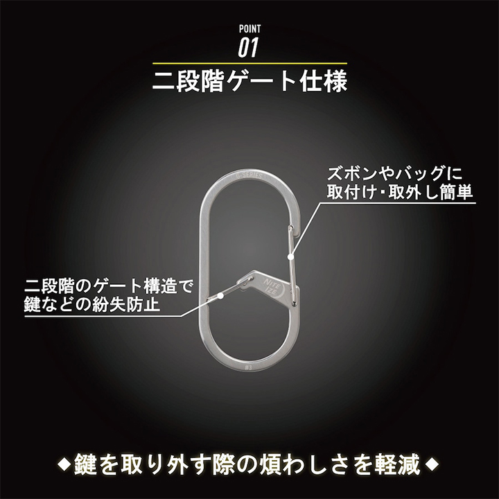 新登場【Gカラビナー#3】2段階フック【ナイトアイズ】独特なG型デザインカラビナ【ステンレス製】鍵キーホルダー【新品】NITE IZE