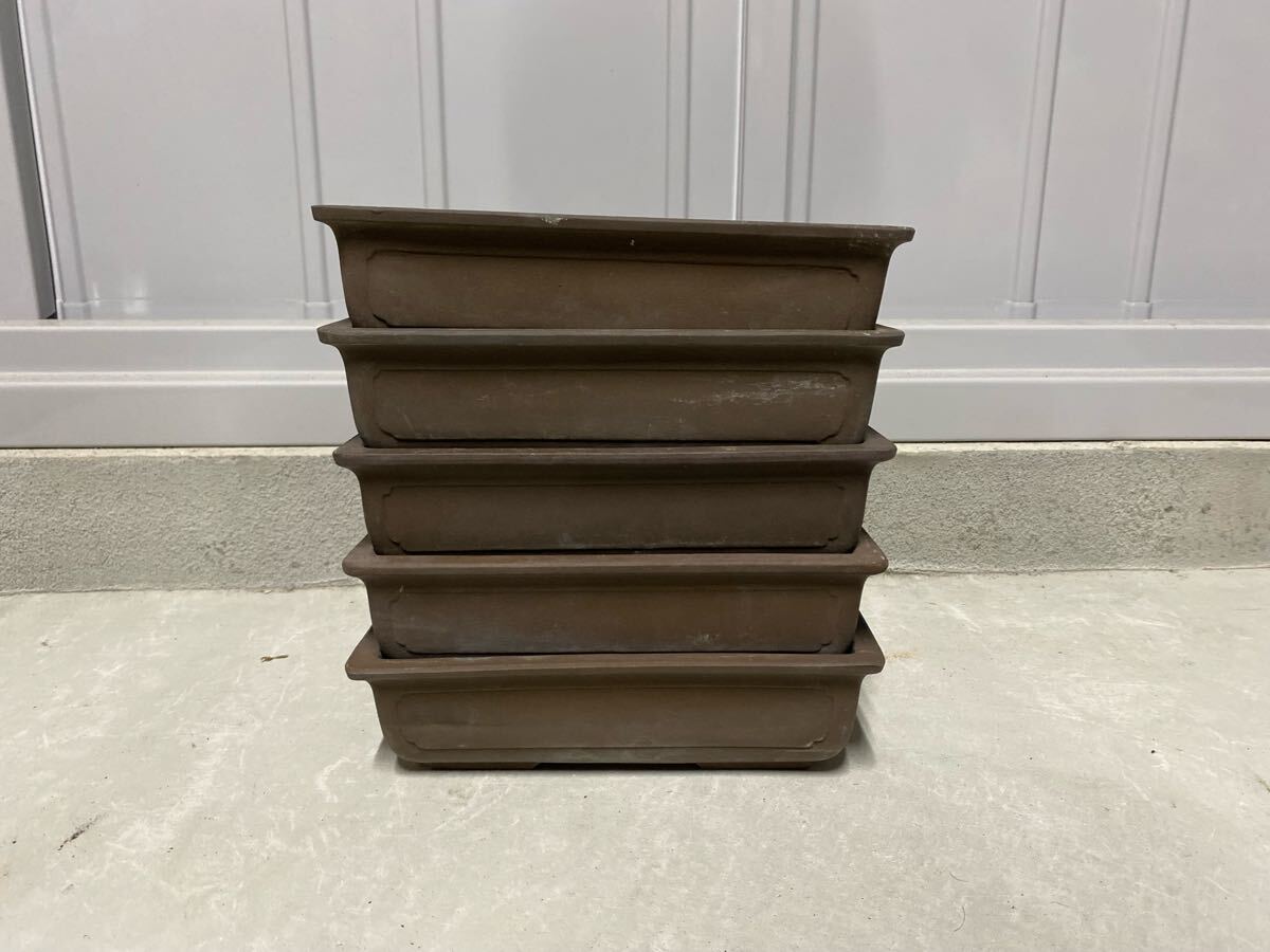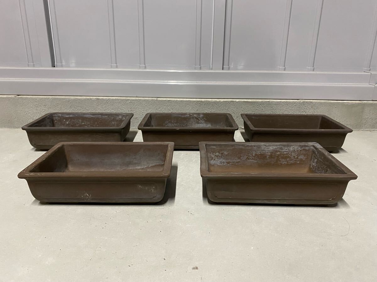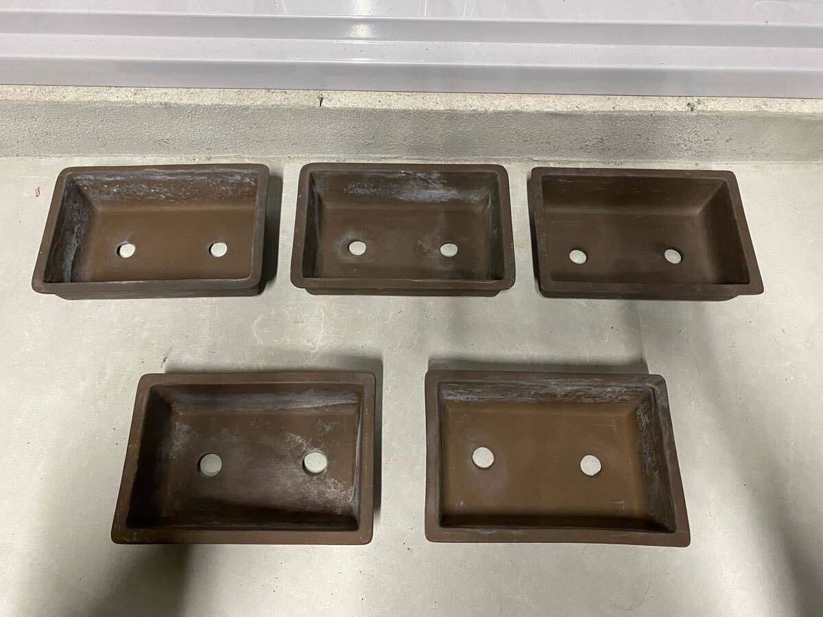 長方で鳥泥の盆栽鉢5点セットです。