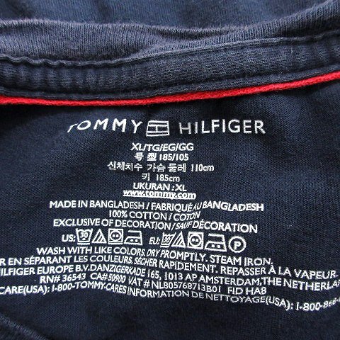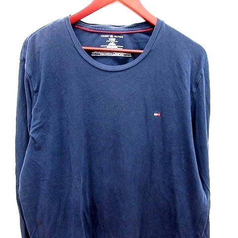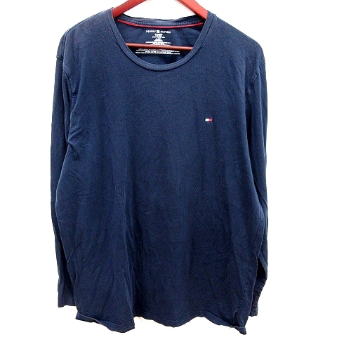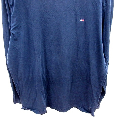 トミーヒルフィガー TOMMY HILFIGER カットソー Tシャツ Uネック 長袖 XL 紺 ネイビー /RT ●RY メンズ