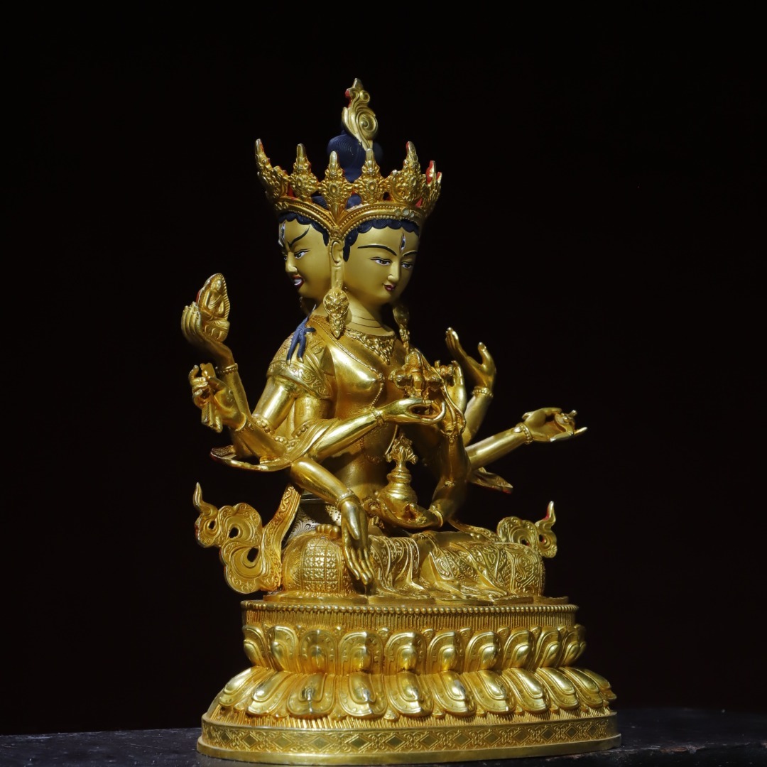 *珍品旧蔵* 清 背光描彩【尊勝仏母】仏像 銅製 極細工 中国古玩 仏教古美術 供養品 H45
