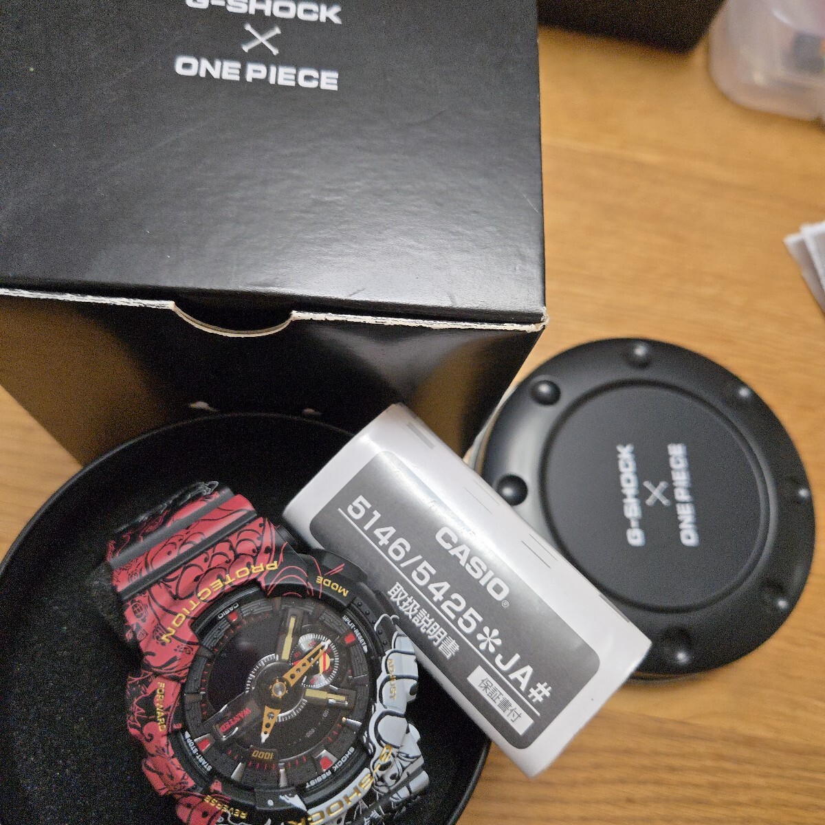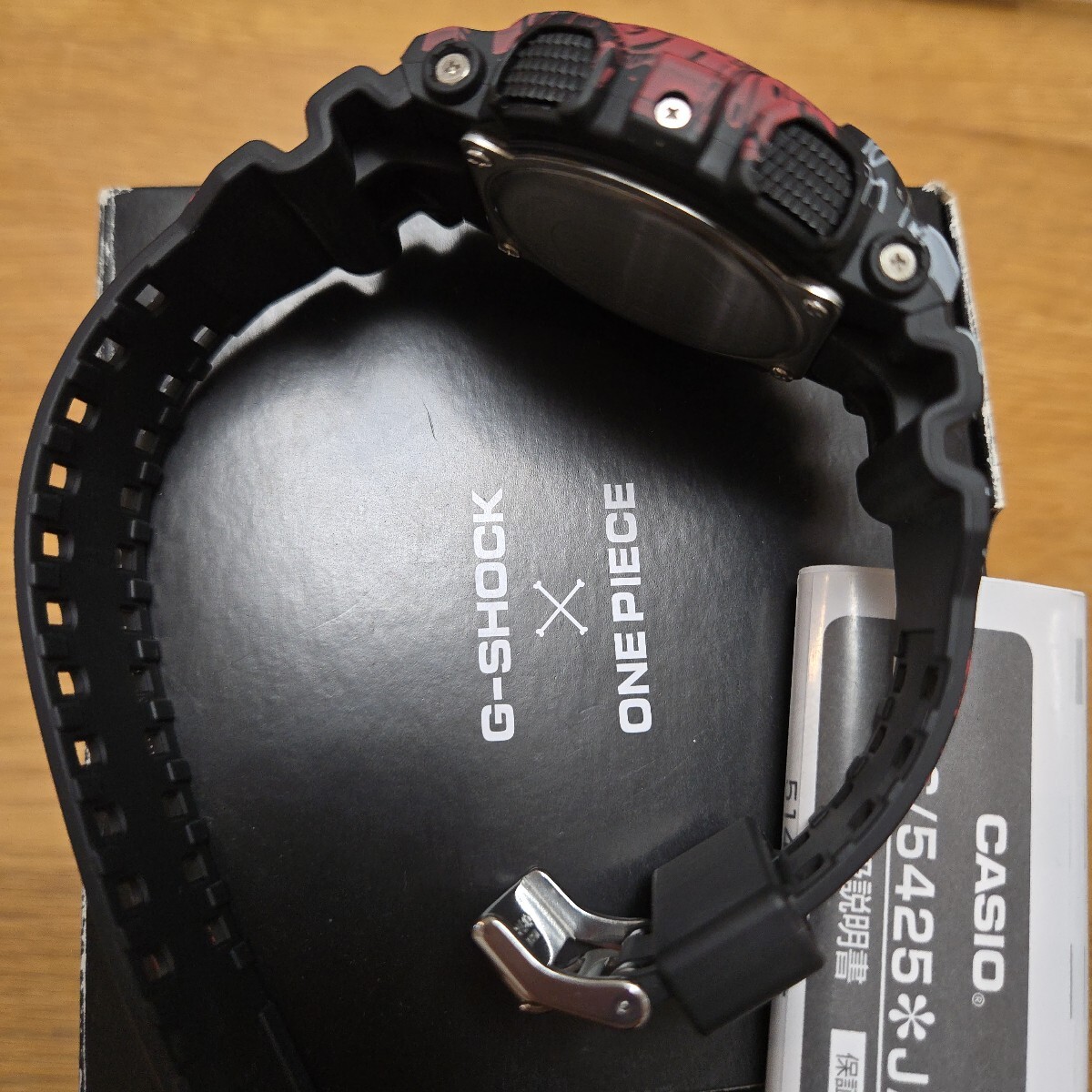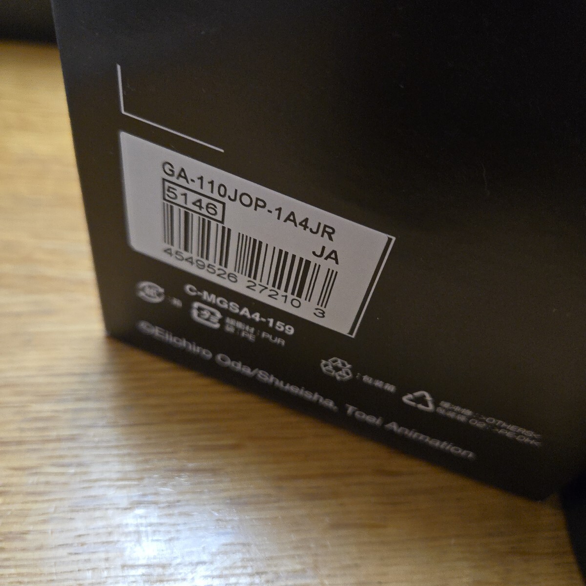 CASIO Gショック ワンピース ルフィーモデル GA-110JOP-1A4JR 新品、未使用品 ガラス、裏ブタ傷なし、 付属品、箱付、取説付 外箱バーコードシール! このモデルもコピー品がかなり出回っていますのでご注意ください! コピー品には紙の外箱がなく箱に張って有るバーコードシールが有りません! 特に箱が無い個体はコピー品の可能性が高いので安く出されても購入するのはお控えください!