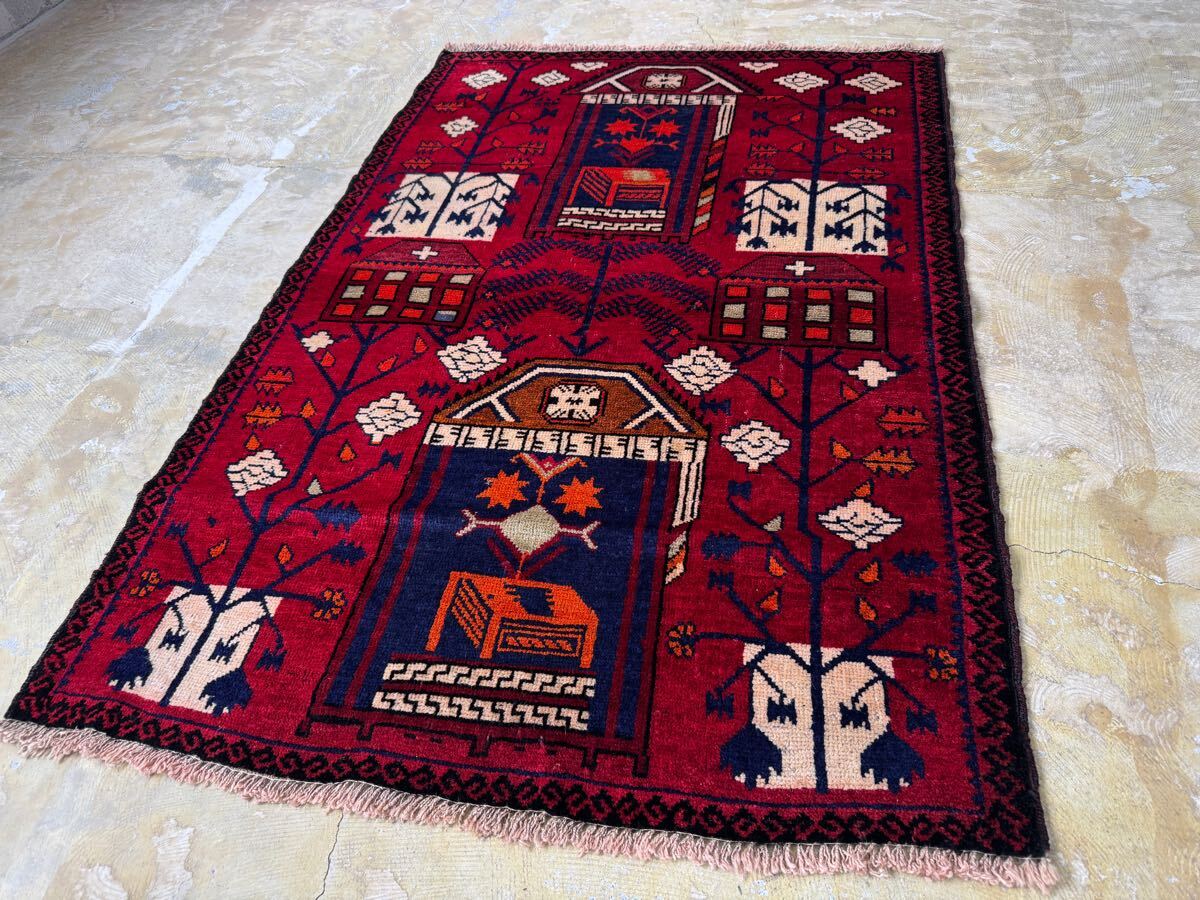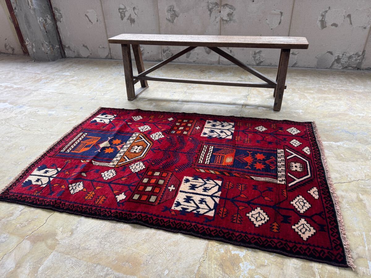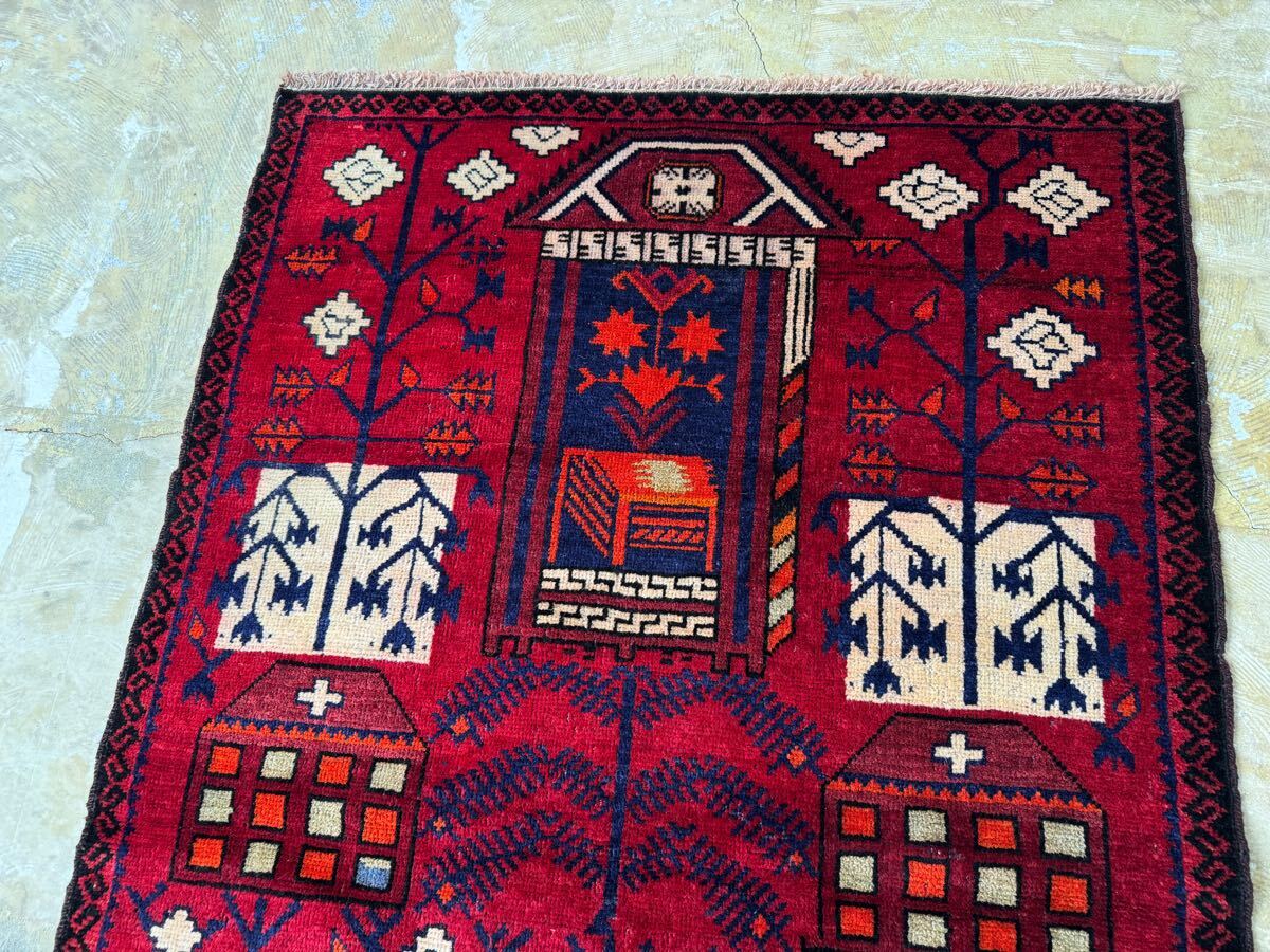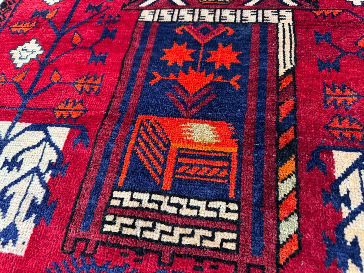 左上にほつれ、全体に擦れが見られますが、ヴィンテージラグの味としてお楽しみください。写真をご確認ください。