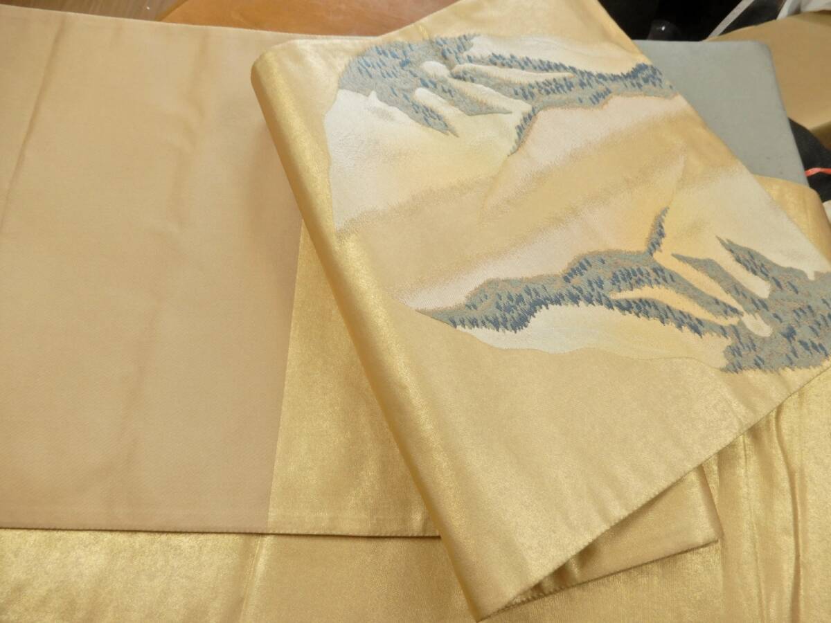 <銀の斧>正絹・金箔の袋帯・瀞金錦のような袋帯・六通・美品