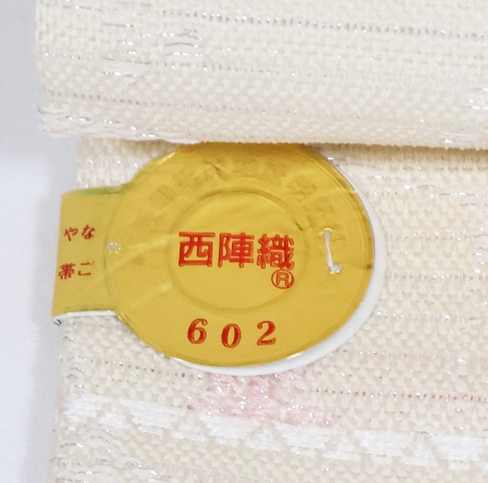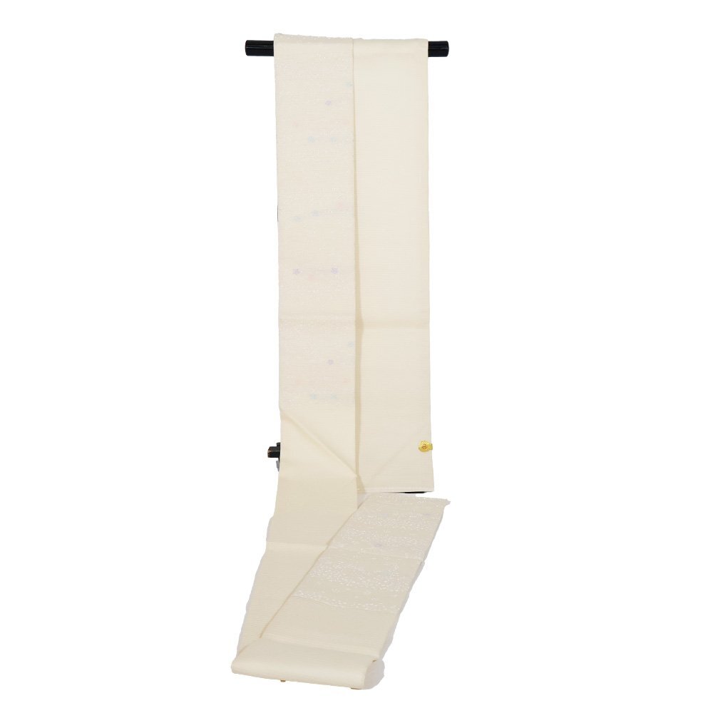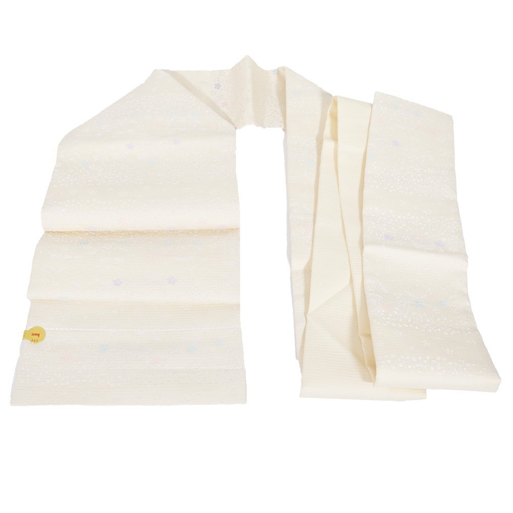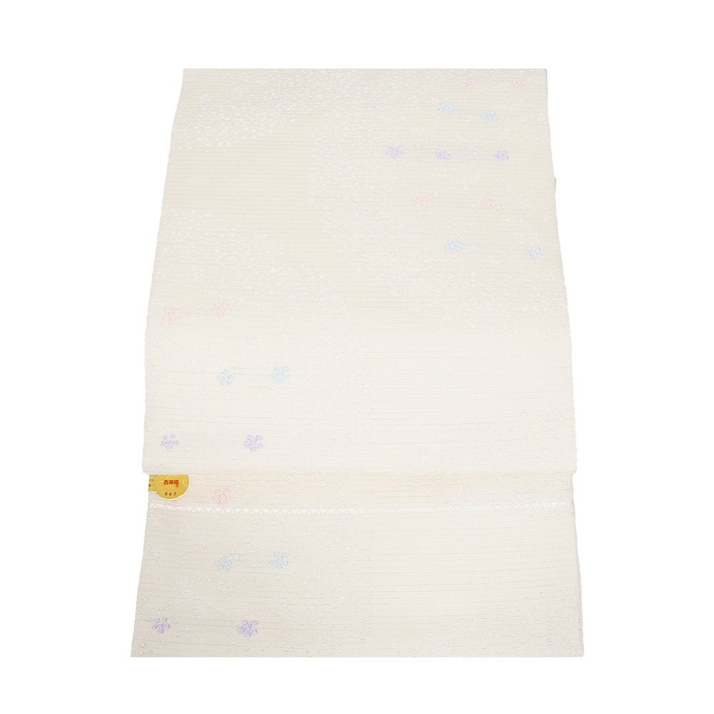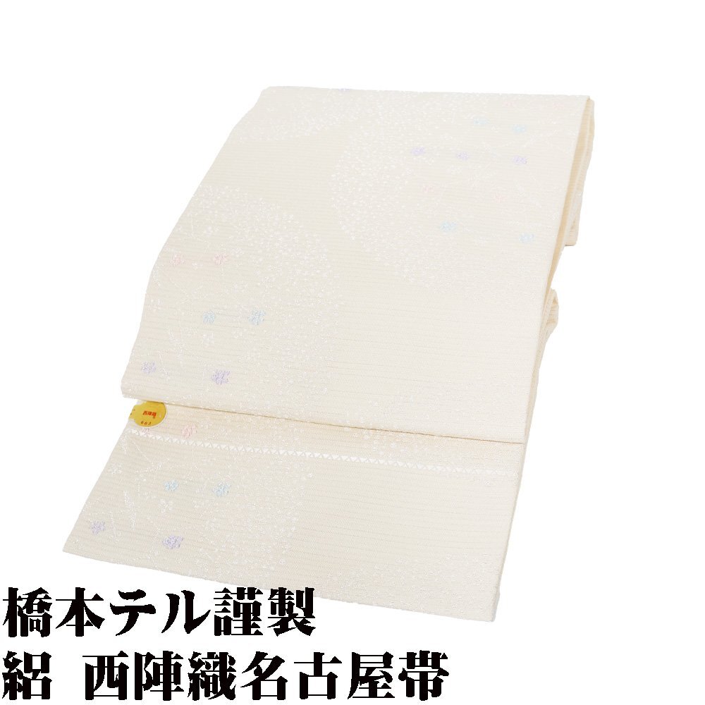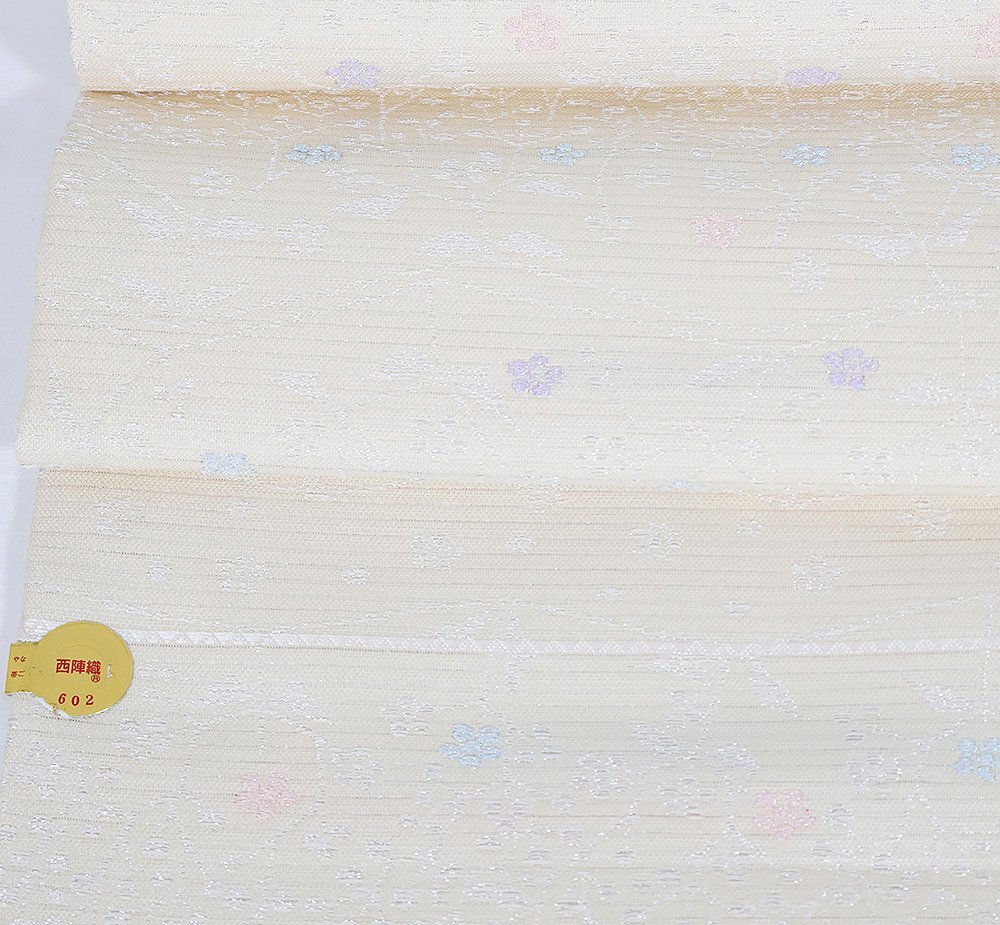 | 橋本テル 謹製 絽 西陣織 九寸名古屋帯 薄いベージュ地 縫い取り・小花 新品 仕立て上がり | |