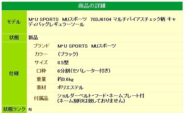 モデル | M・U SPORTS MUスポーツ 703J6104 マルチバイアスチェック柄 キャディバッグレギュラーソール | |