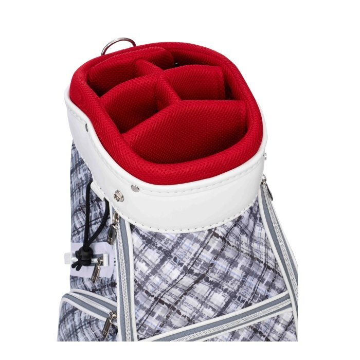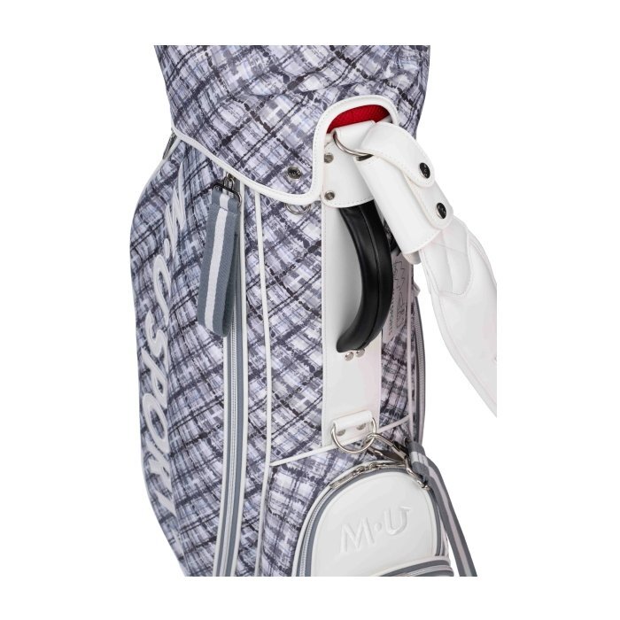 程度等 | 撥水加工されたミックスツイード風バイアスチェックプリントの生地が特徴的な8.5インチキャディバッグ。 年代や男女問わずも幅広くご使用頂けるMUらしい新しい感覚のユニセックス対応シリーズ。 ボストンバッグやカートポーチとセットすれば素敵さUP☆ |