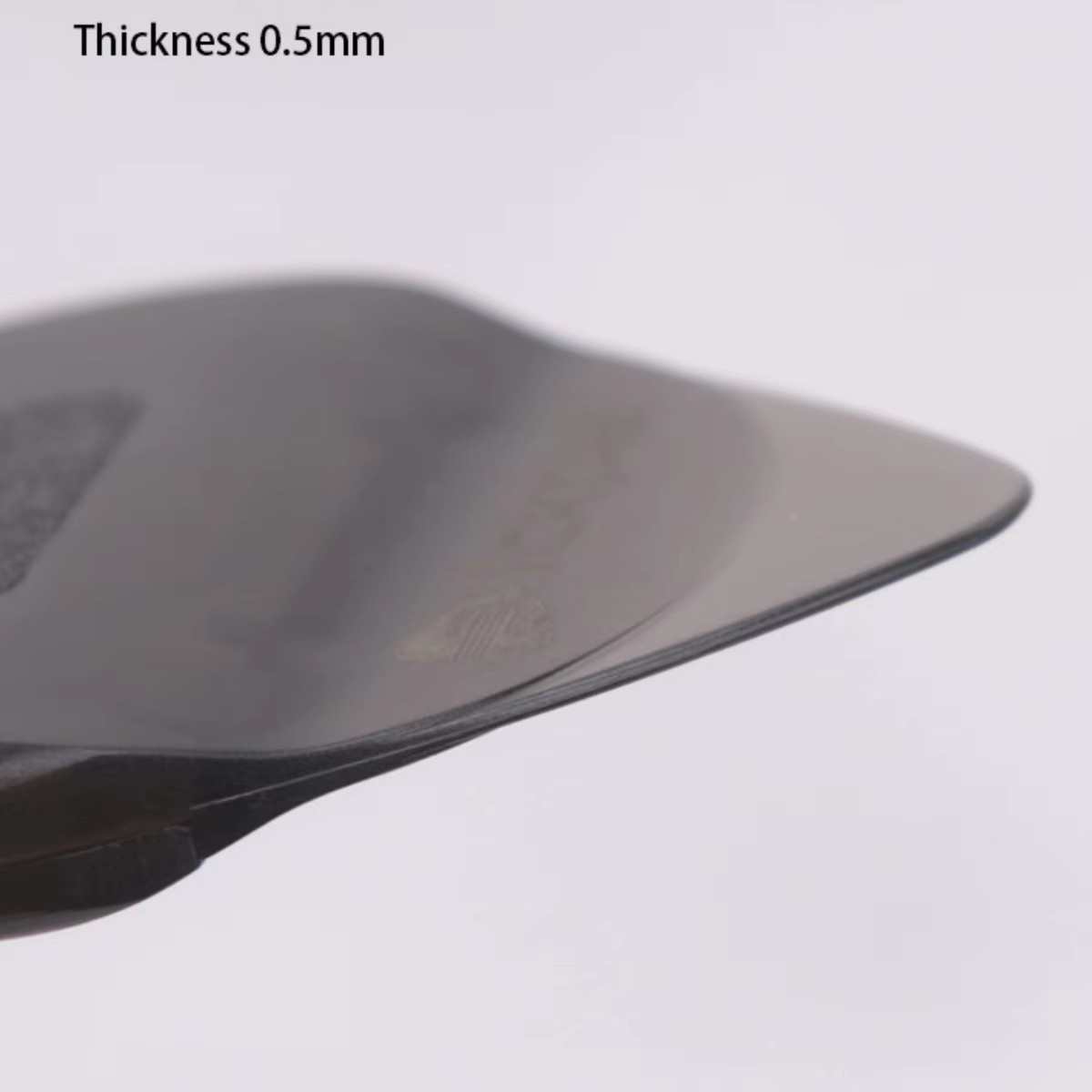 ただこの商品はピックの厚みに種類はなく0.6mm厚の1種類で一般的に一番薄い(THIN)ピックとほぼ同等ですが、 素材は硬いので慣れが必要かもしれません。