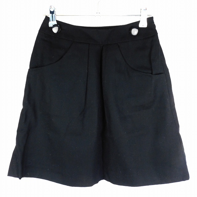エフデ ef-de スカート フレア ミニ サイドファスナー ウール 無地 7 黒 ブラック ボトムス /T2 レディース