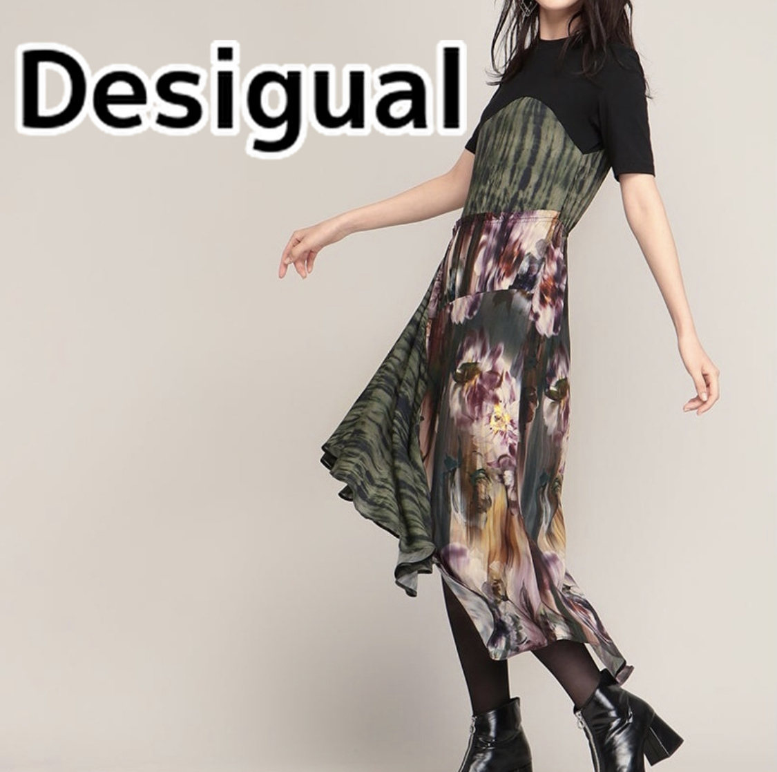 Desigual デシグアル ワンピース アシンメトリー 異素材 ドッキング 変形ヘム イレギュラーヘム レディース y2k フェアリーコア フェアリーグランジ ボーホー