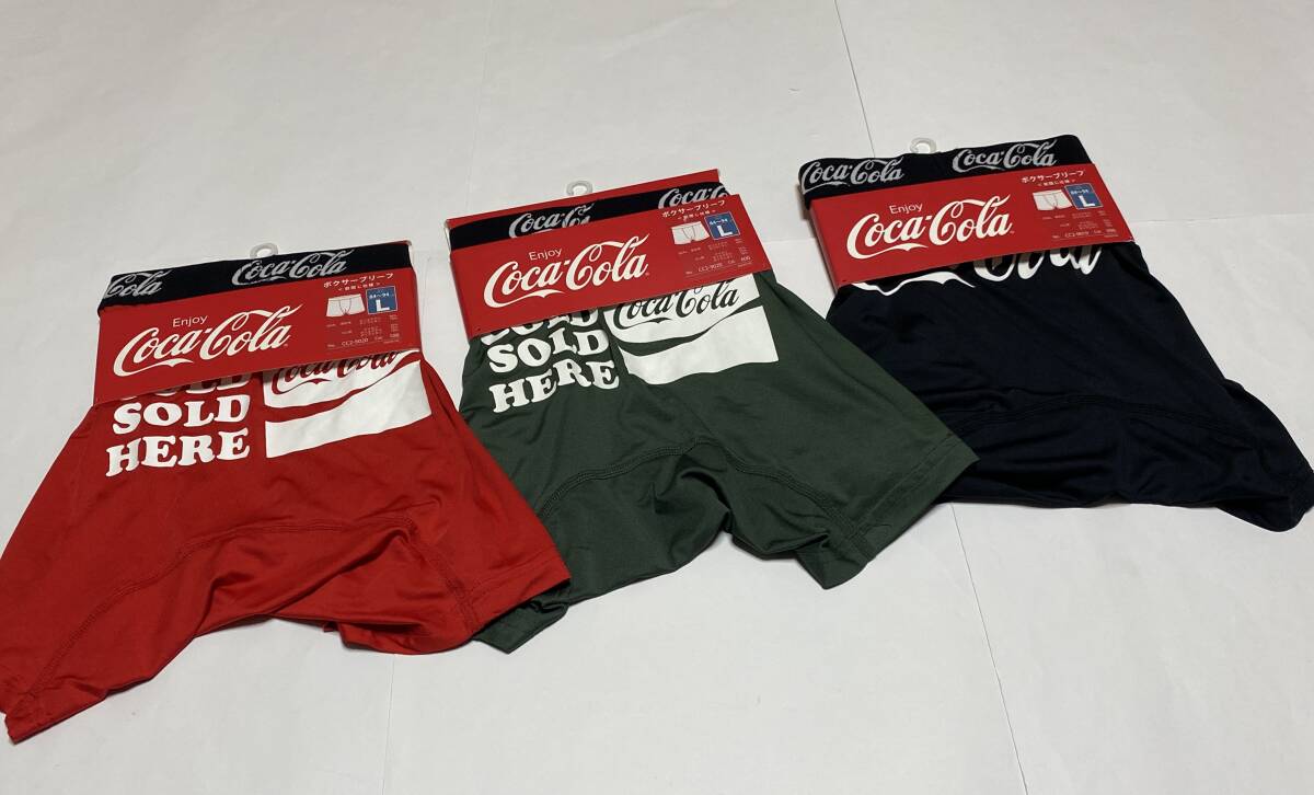 福助 Coca-Cola コカ・コーラ ボクサーブリーフ Lサイズ 84-94㎝ 3色 (レッド、カーキ、ブラック) 展示未使用品