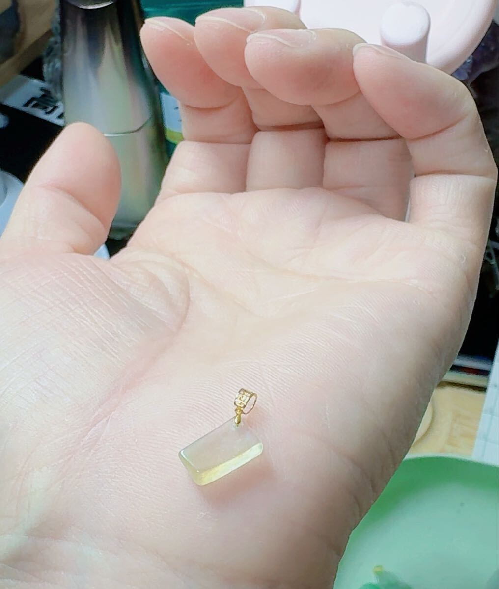 R2-01061天然本翡翠《本物保証》 氷黄翡 珍しい ミャンマー産 ペンダント K18 一点物 超希少 縁起物 お守り パワーストーン