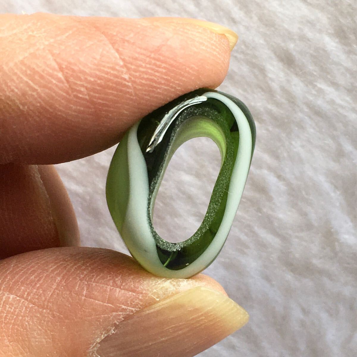 深緑色のガラスと白いガラスをマーブル状に合わせてみました。