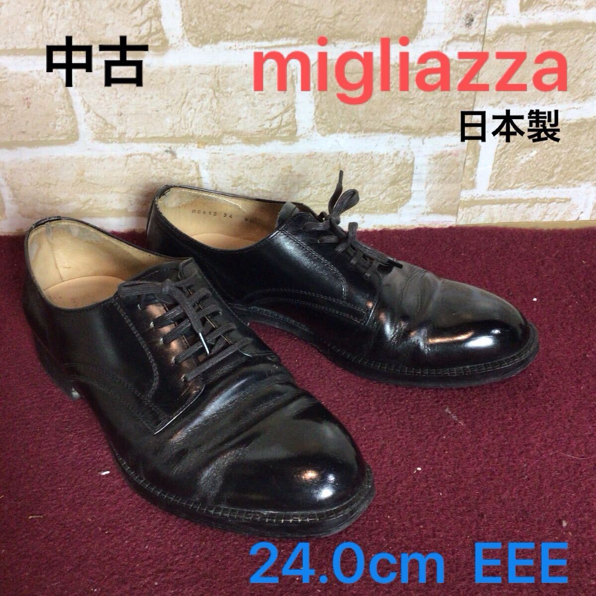 【売り切り!送料無料!】A-367 migliazza!ビジネスシューズ!24.0cm EEE!黒!ブラック!冠婚葬祭!仕事!ビジネス!フォーマル!中古!