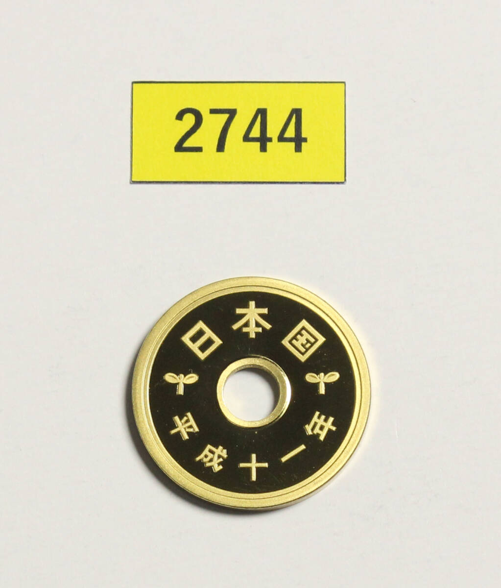 完全未使用!極上美品!5円硬貨/プルーフ貨幣/平成11年/1999年/稲・歯車・水/黄銅/3.75g/直径22.0mm/ギザ無/コインケース収納/№2744