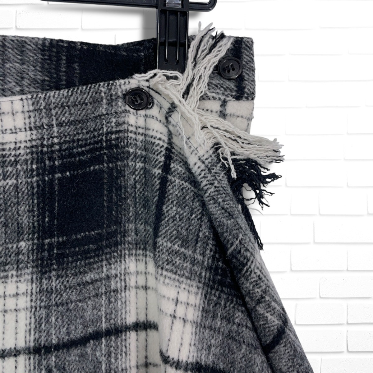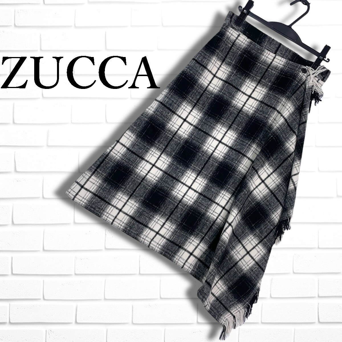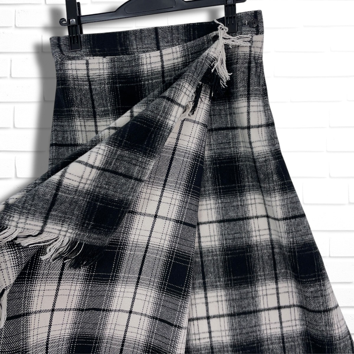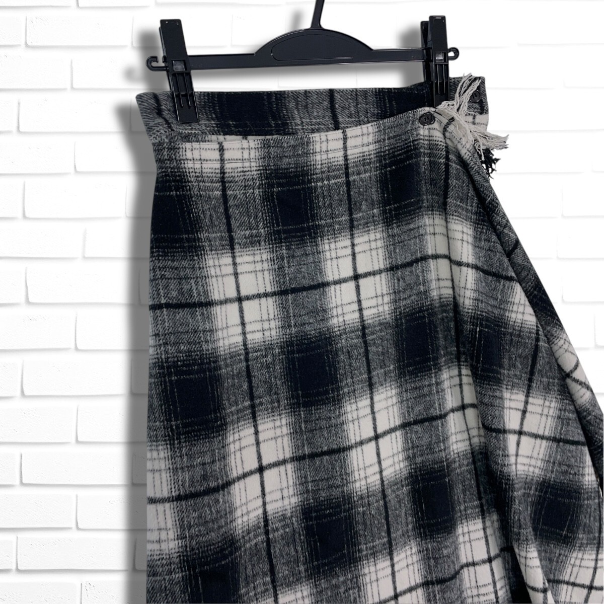 ◆美品◆ ZUCCA ズッカ ウール ブレンド イージー ラップ チェック ロング スカート 白 黒 ホワイト ブラック レディース M ◆送料無料◆ 1025E◇