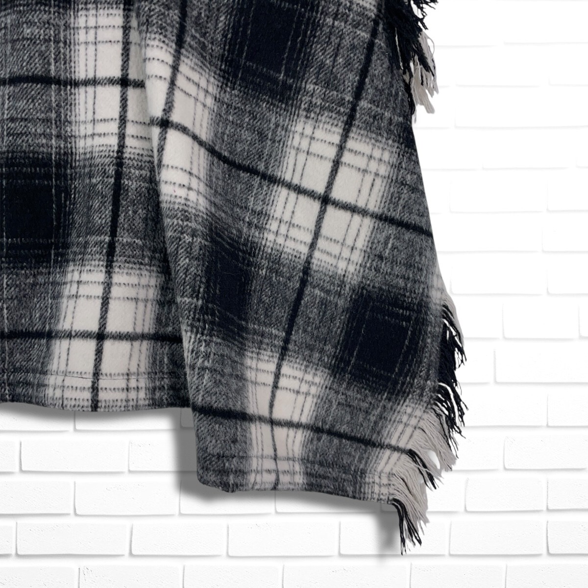 ◆美品◆ ZUCCA ズッカ ウール ブレンド イージー ラップ チェック ロング スカート 白 黒 ホワイト ブラック レディース M 1025E◇