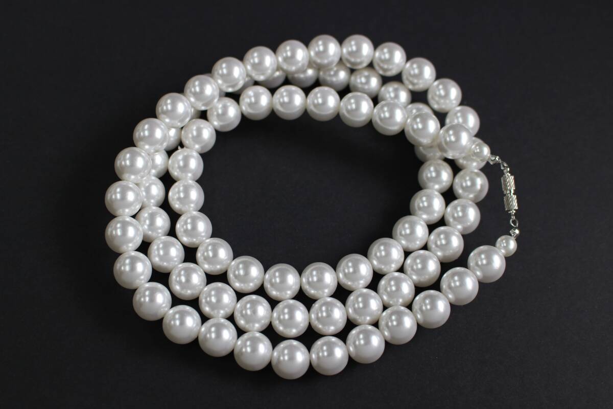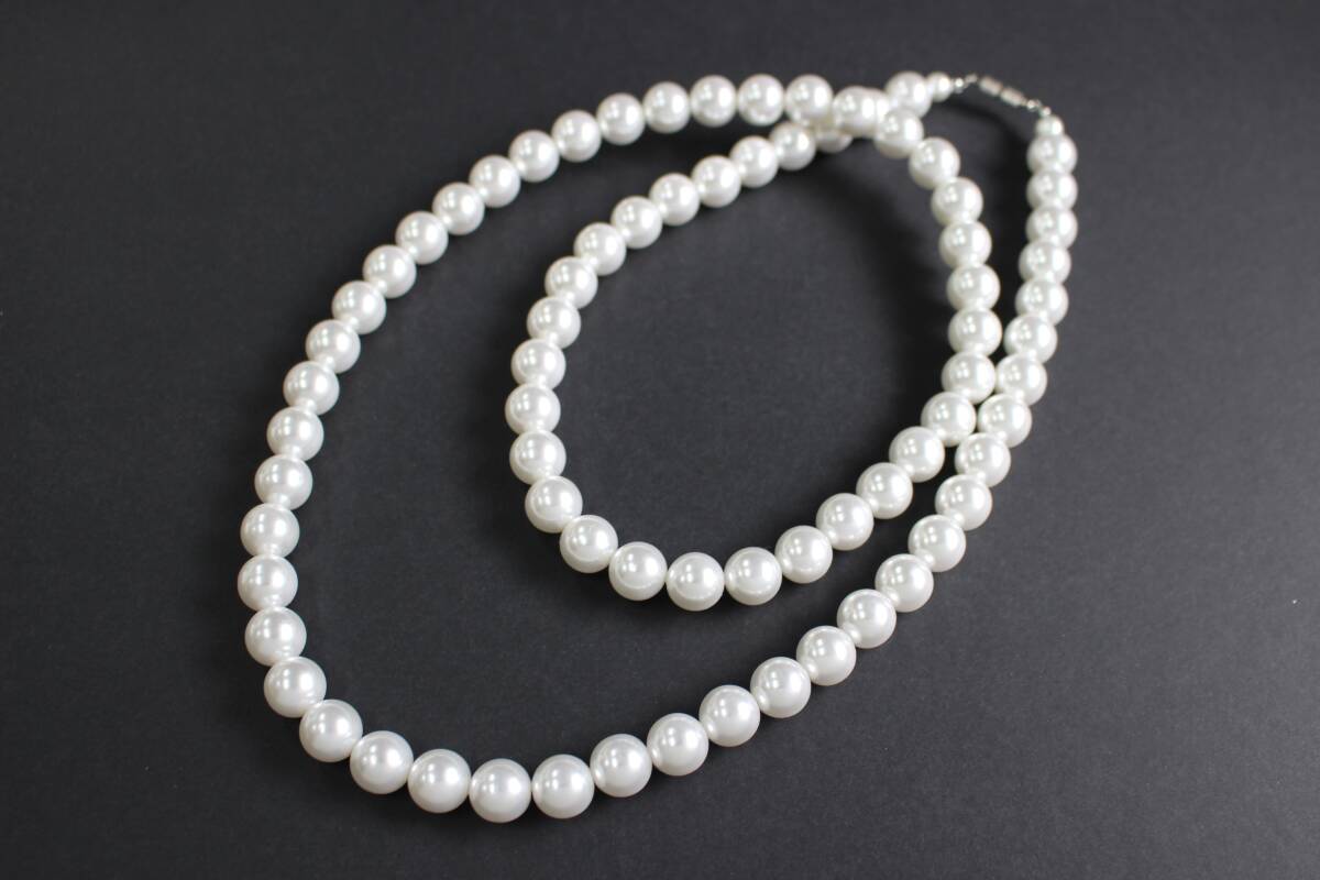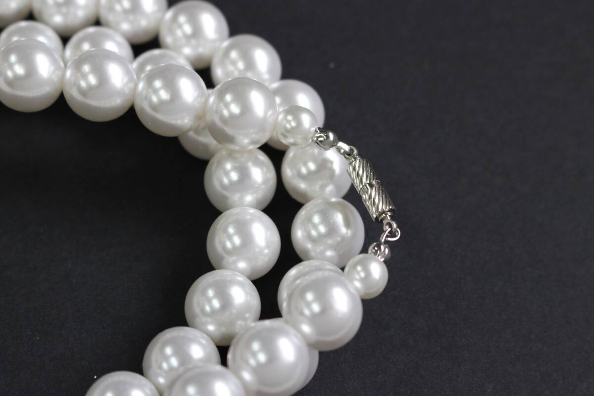定形外郵便の送料込み:(樹脂製)白パールネックレス:12㍉:約90㎝まで長さの変更可能
