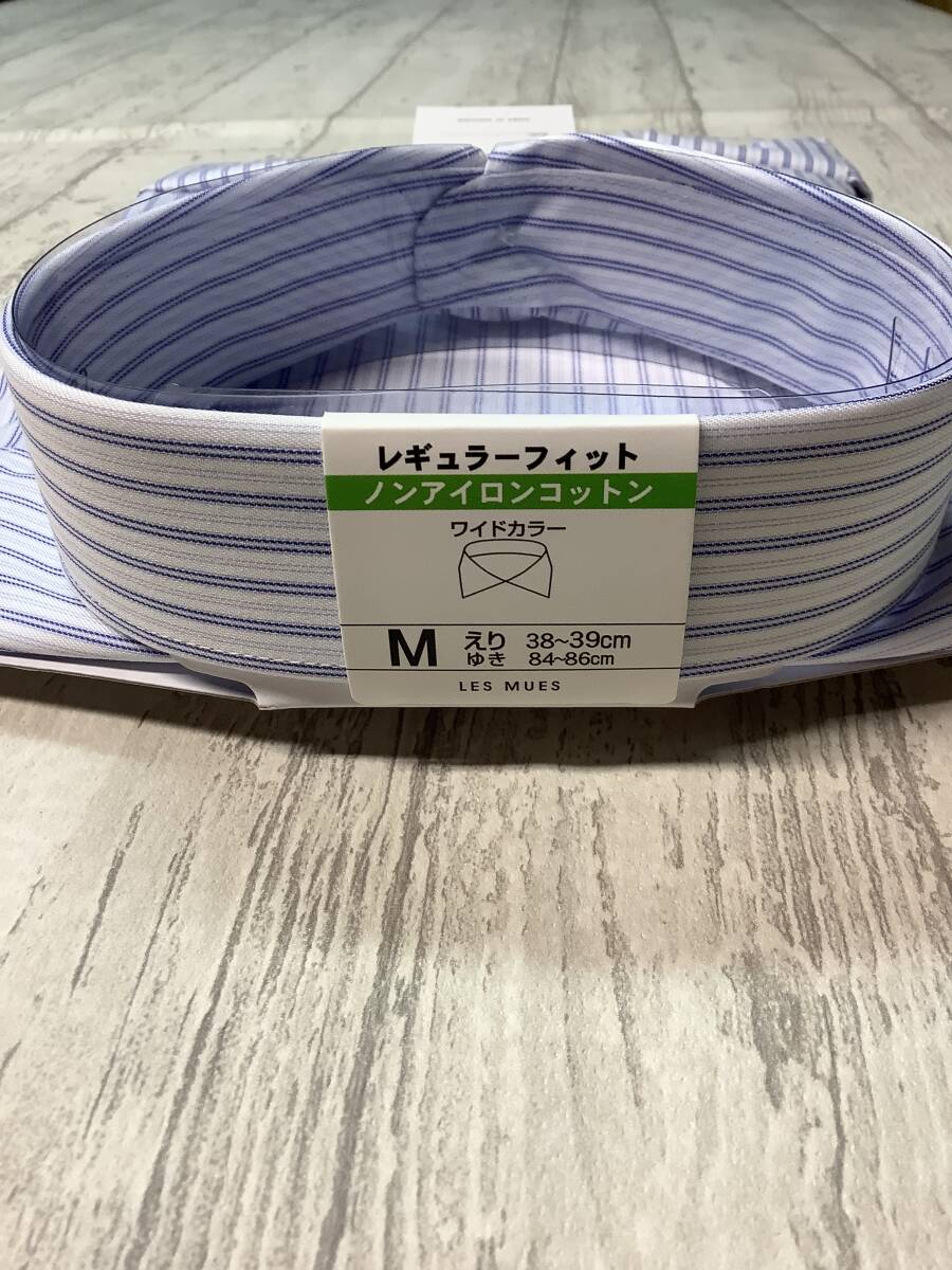 新品 39-86 長袖Mサイズ ワイドカラー★ドレスシャツ ノンアイロンコットン 綿100% ★ブルーラインストライプ