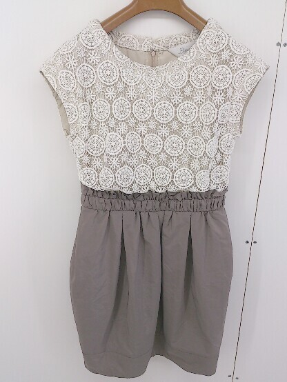 ◇ Liesse リエス レース 半袖 ミニ ワンピース サイズ3 オフホワイト ブラウン ベージュ系 レディース