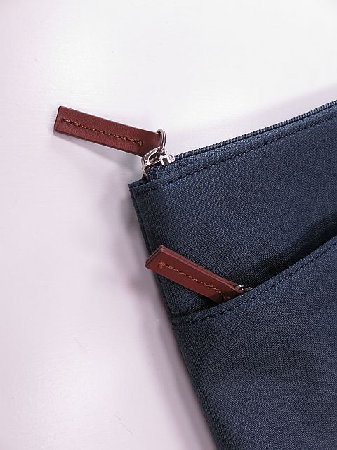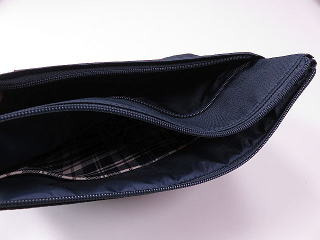 ロゴ入り、フロントジップポケット、内側2つポケット