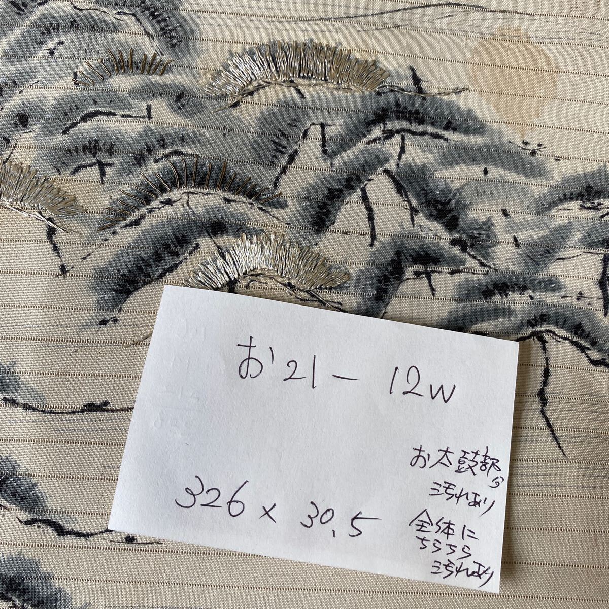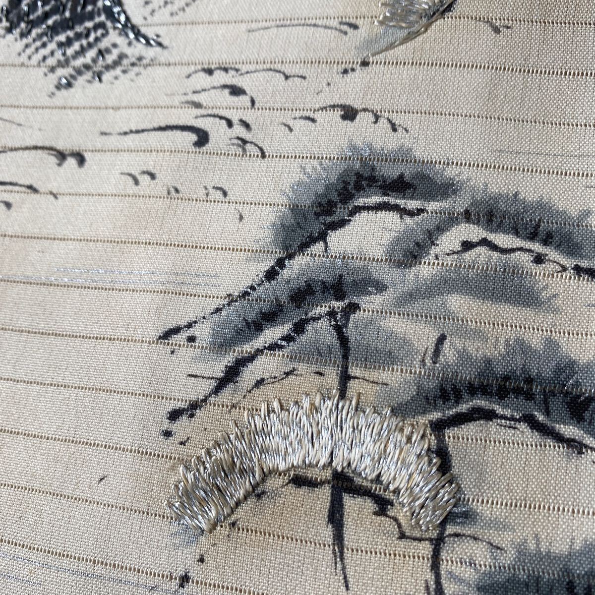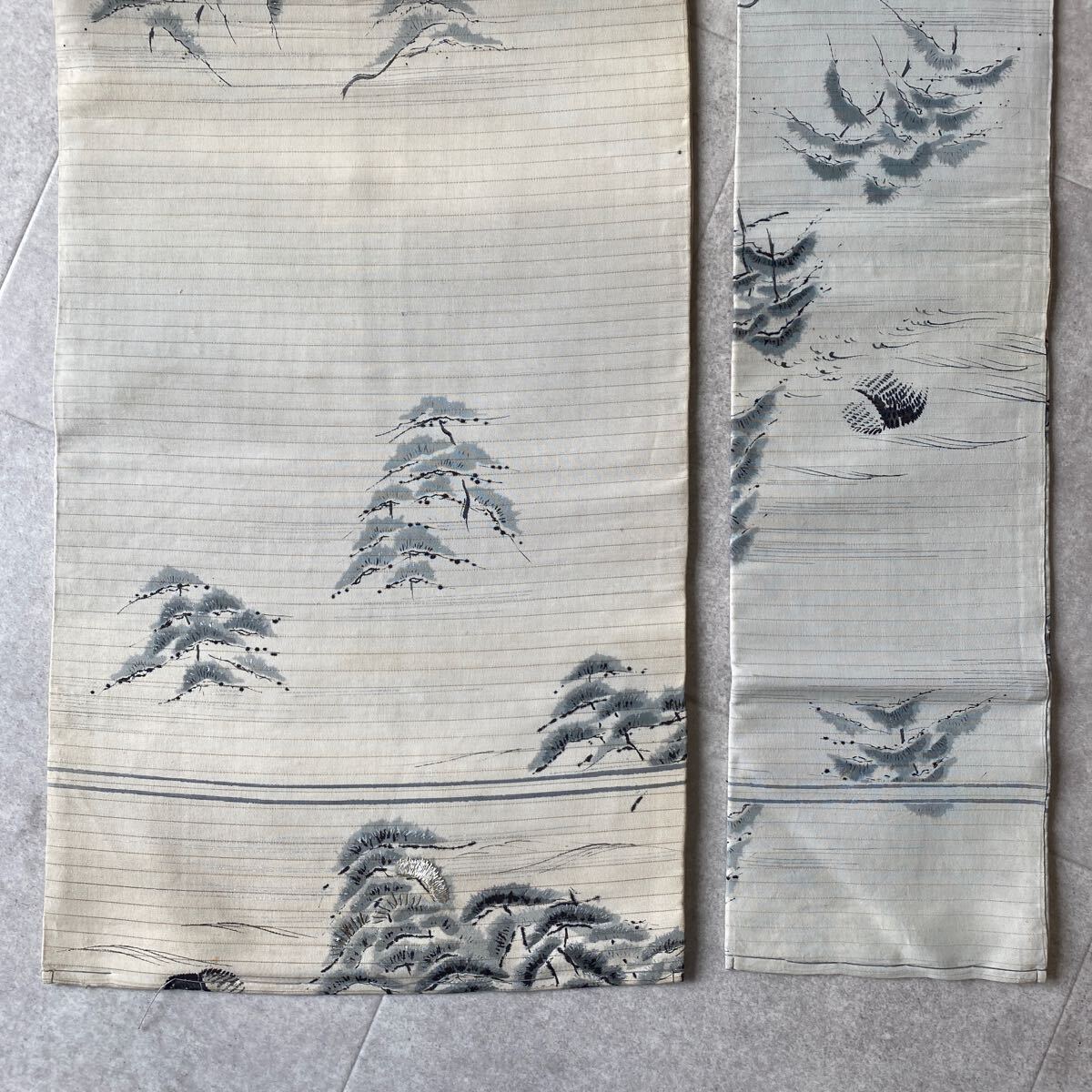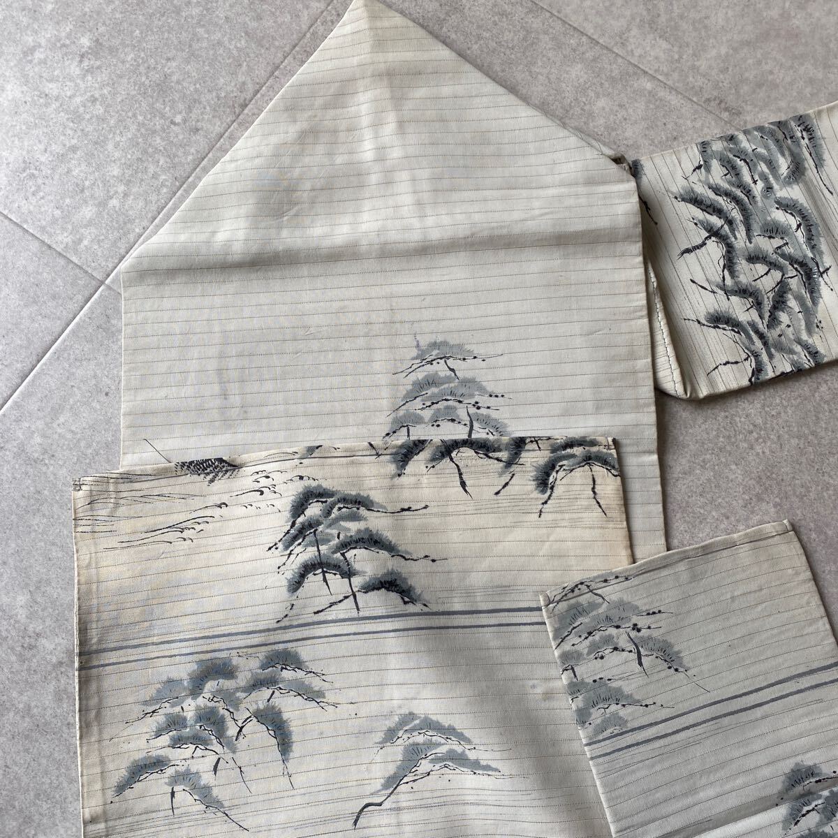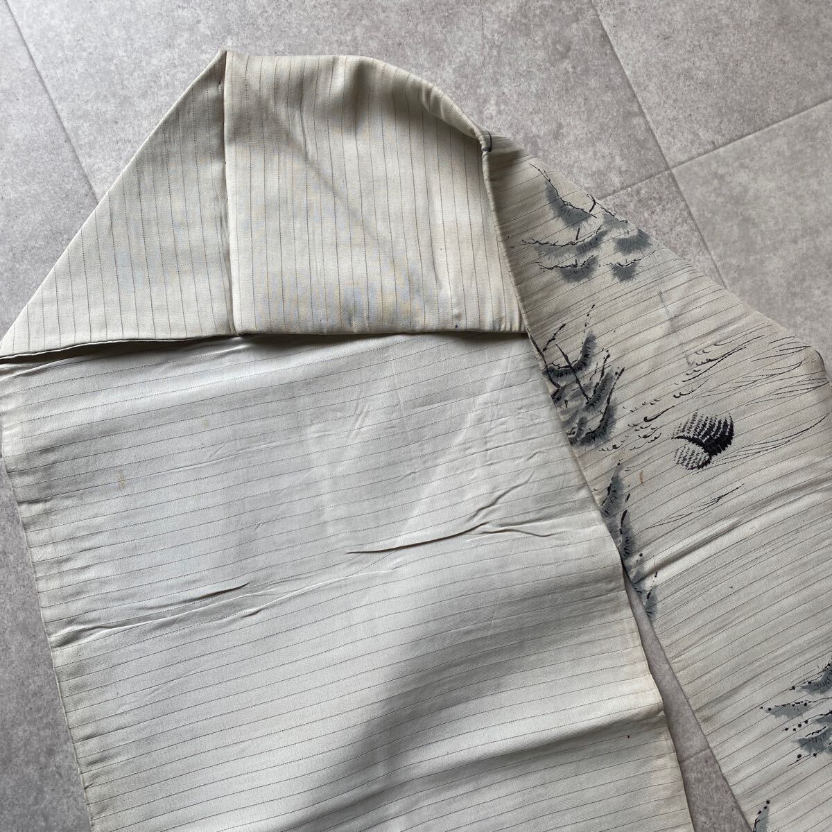 アンティーク 名古屋帯 絽 紗 夏帯 夏物 着物 昭和レトロ 大正ロマン モダン 和洋折衷コーデ リメイク 白地 松 水墨画 刺繍 銀糸 お21-12w