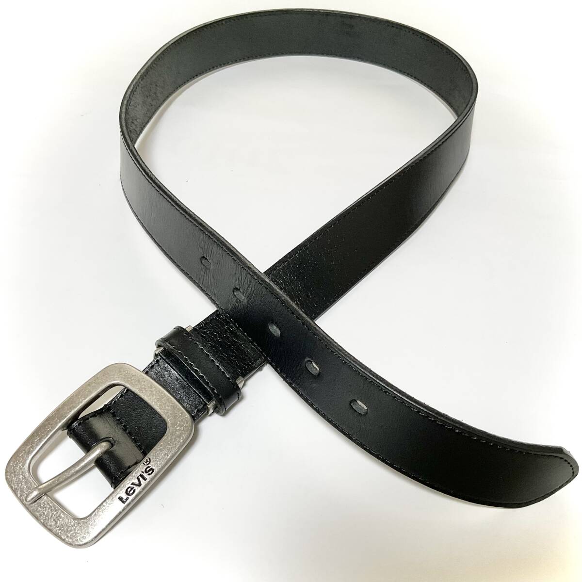 Levi’s レザーベルト ブラック/長方形バックル/日本製  サイズ85/フリー   W219