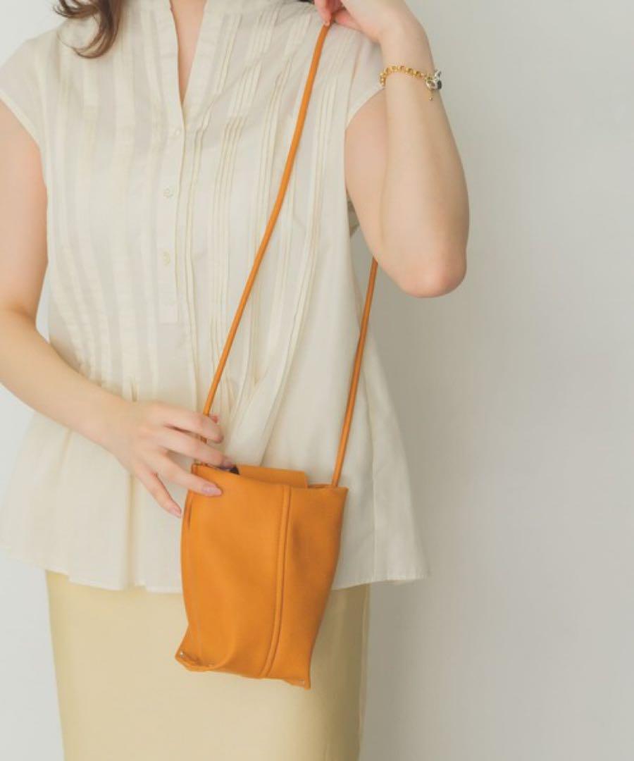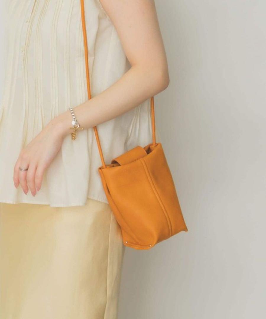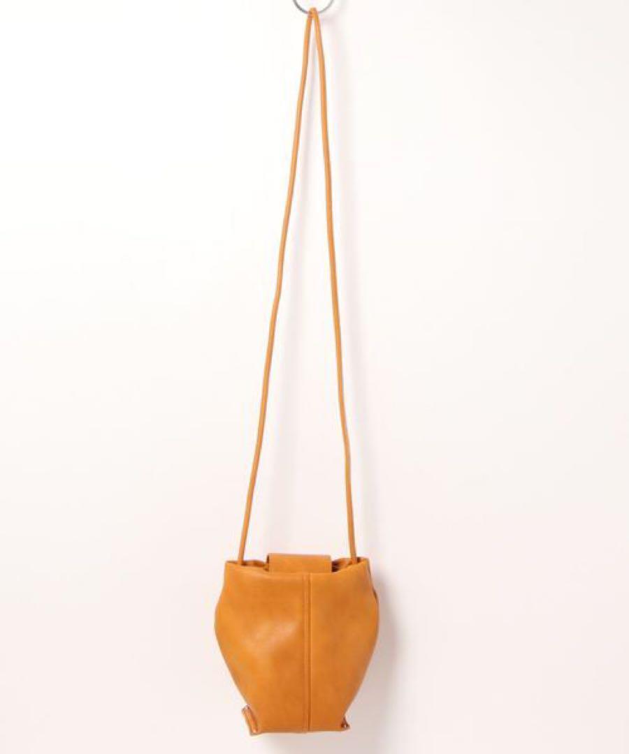 シンプルでカジュアルなレザー製のオレンジショルダーバッグ。