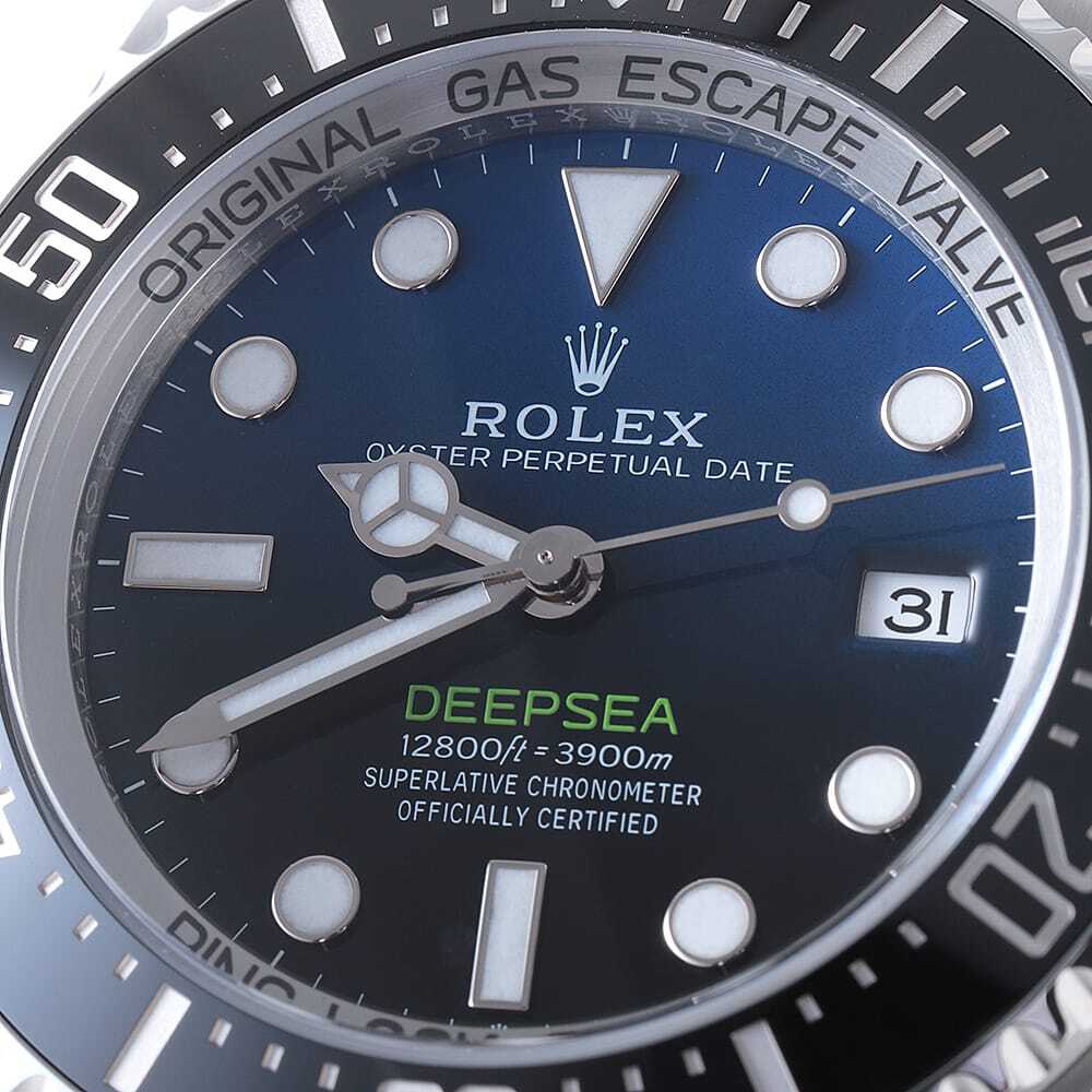 モデル情報 | 3900mものダイビングに耐えうる堅牢性と深みある美しいDブルー文字盤でおなじみのディープシー。2022年モデルが入荷しました。搭載するムーブメントはロレックスが「新世代」と自負するCal.3235。特許を取得したクロエナジーエスケープメントや新素材を採用し、さらなる正確性や信頼性、耐衝撃性や耐磁性を備えることとなりました。超ロングパワーリザーブ約70時間を獲得したことも見逃せません。ラグやバックルなどもマイナーチェンジが施され、より新しく、より最先端になったディープシーです。パワーリザーブ約70時間。こちらはSEA-DWELLERが表記されていないタイプです。 |