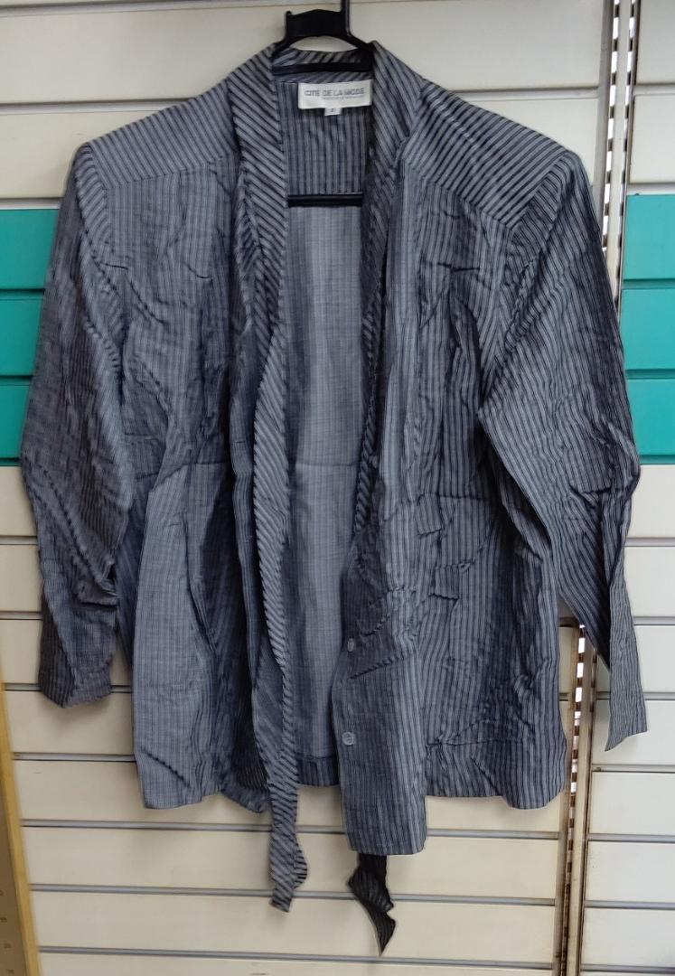 ★ストライプデザインのオープンフロント長袖シャツ、サイズ9★送料込価格!
