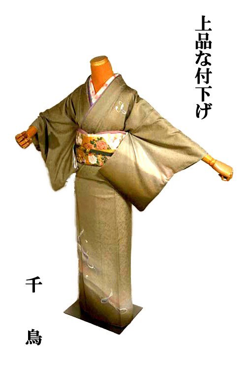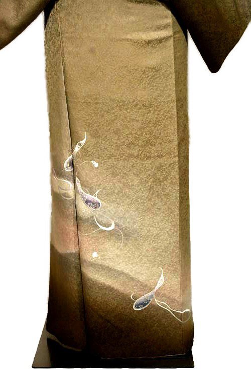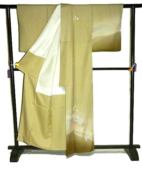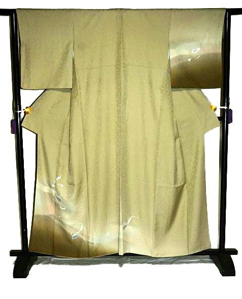 付下げ 中古 着物 送料無料 身丈158.5cm 裄丈63cm 最高峰 暈し染め 銀彩 ラメ 瓢箪 1つ紋 正絹 ベージュ レディース T3573
