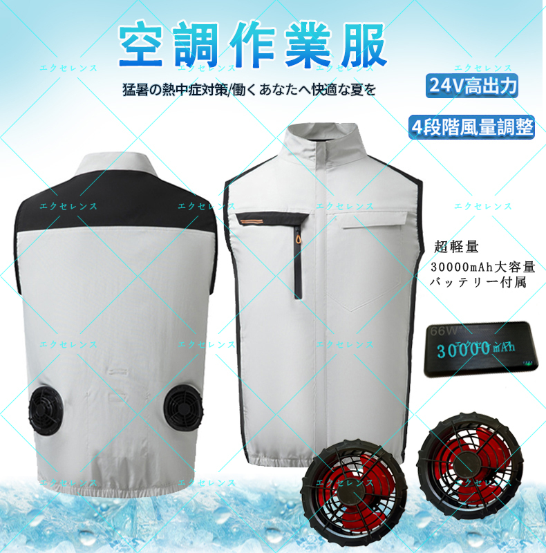 新品《2XLサイズ》グレー 【24V超高出力】空調作業服 ファン付き 30000mAh大容量バッテリー付属 ファン付き作業服ベスト 薄型 25-01