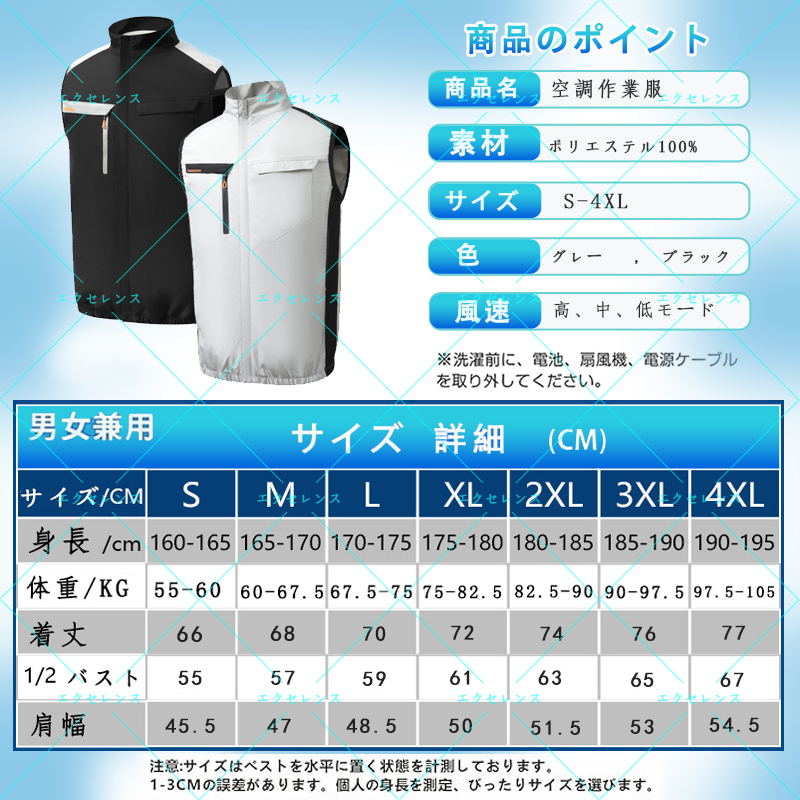 ★【セット内容】】ベスト*1、 30000mAhバッテリー*1、 USB充電ケーブル*1、 ファン*2 、 DC接続ケーブル*1  。