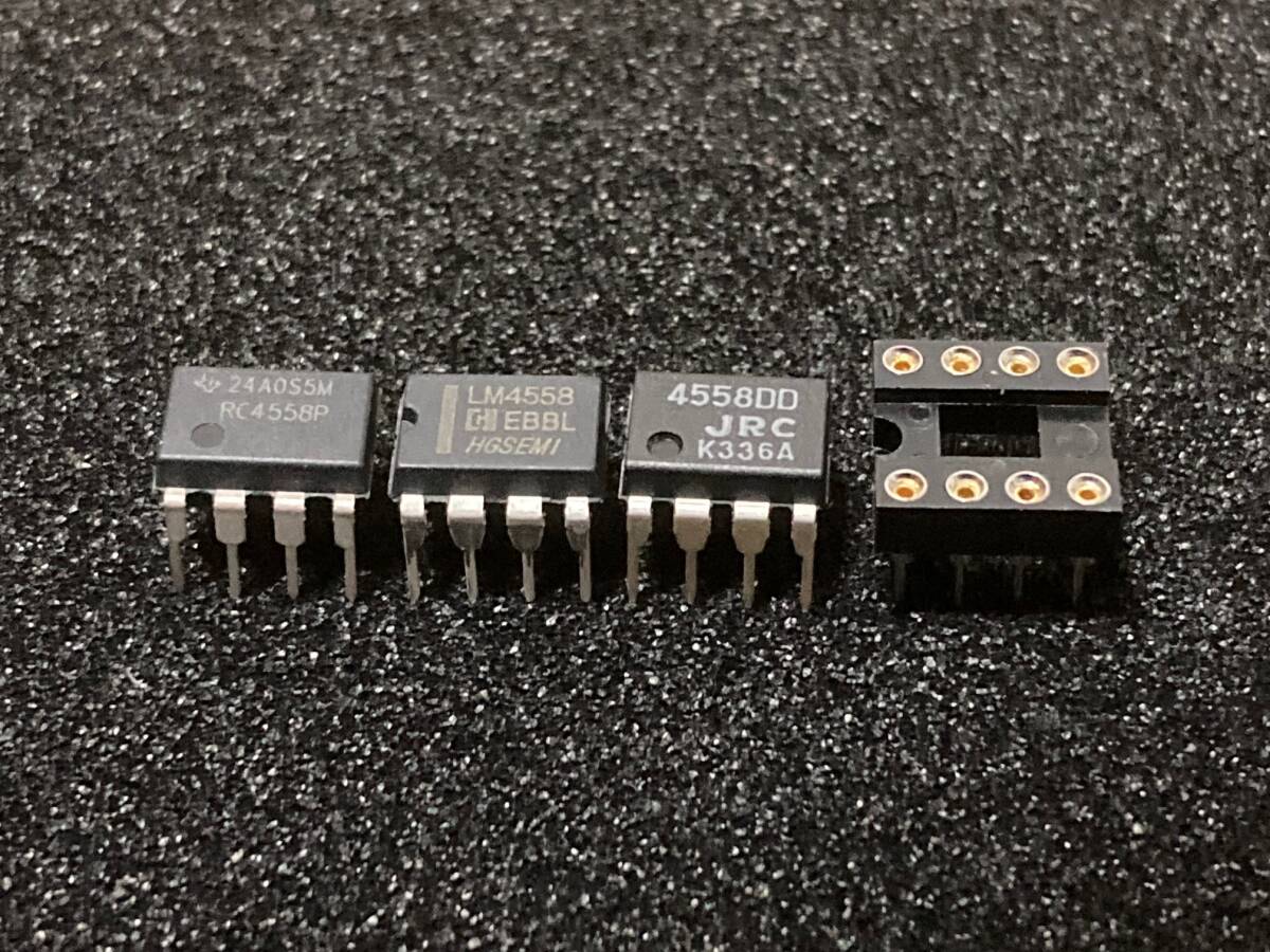 エフェクター・オーバードライブのお好みの音質評価用に各社の4558と、