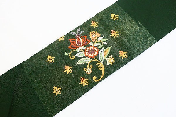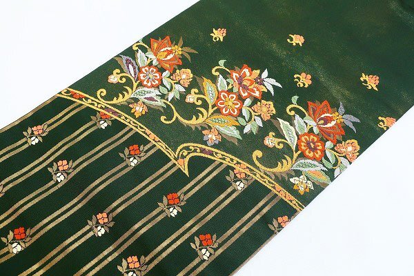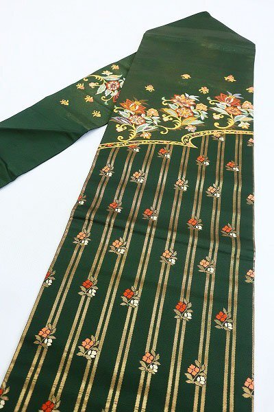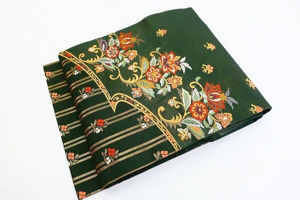 | 未使用品 名古屋帯 深緑 華文 金糸 長さ3m58cm お洒落 正絹 仕立て上がり 着物フィ m-7747 |