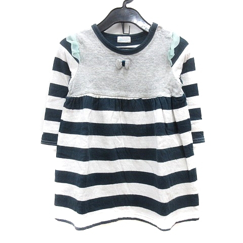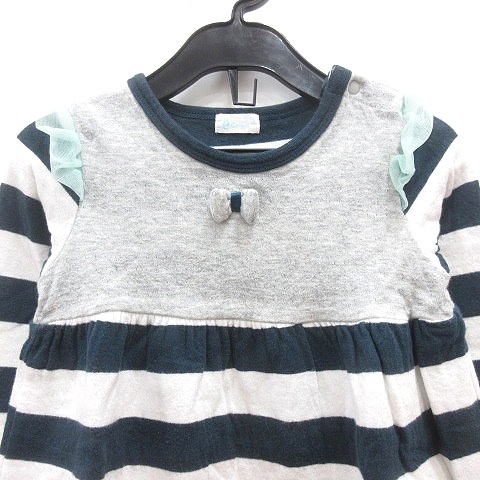 コンビ COMBI mini カットソー クルーネック ボーダー 七分袖 切替 フリル 90 紺 ネイビー /MN ●RY キッズ