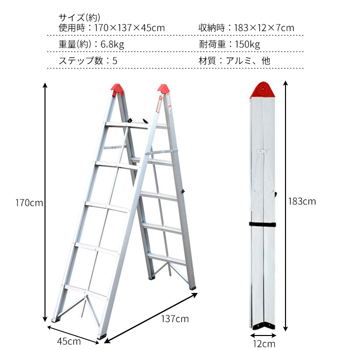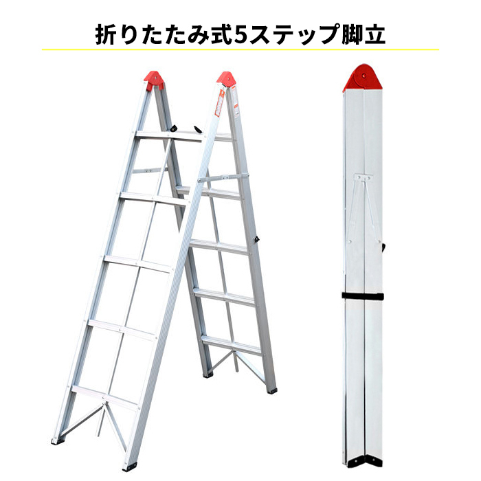 ★5段★ 脚立 折り畳み 軽量 アルミ 伸縮 耐荷重150kg