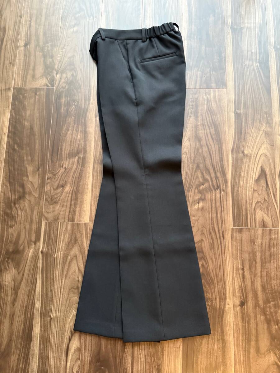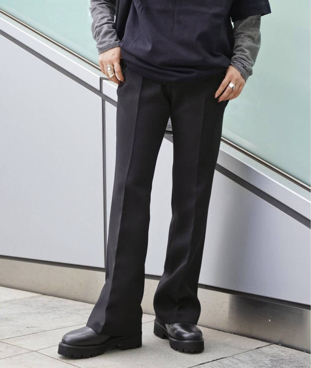 腰回りに程よいゆとりがありながらも、膝から裾いかけて自然なフレアラインが脚を綺麗に見せてくれるスリムパンツです。