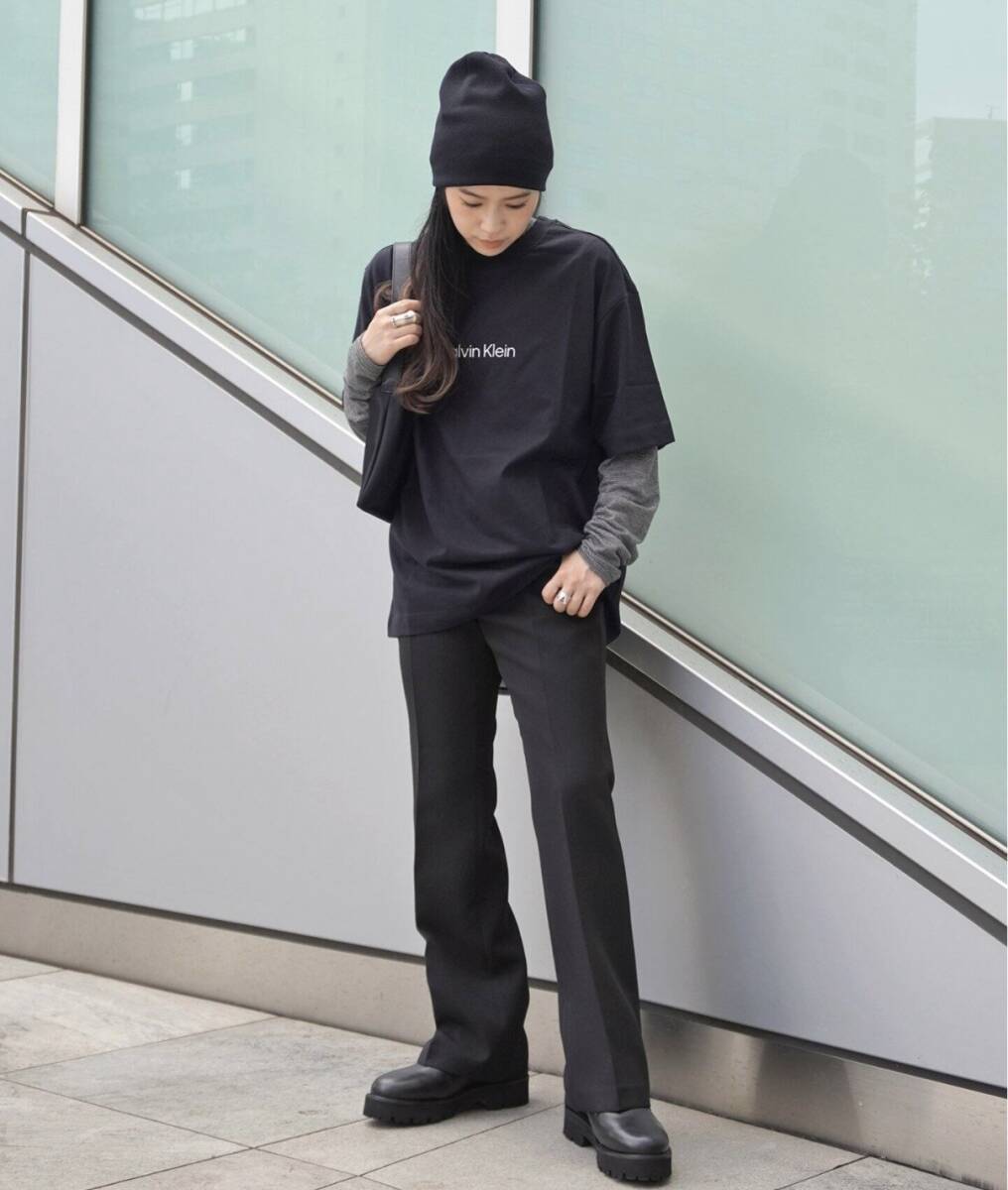 スニーカーなどボリュームシューズとも相性がよく、オンオフで兼用できます。