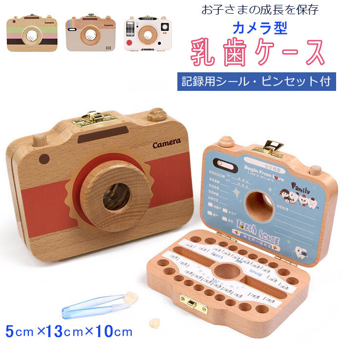 商品説明 | ・乳歯が1本ずつ抜けていくごとに、お子さまの成長が保存できる「カメラ型乳歯ケース」が新登場。 ・出生時の身長や体重、血液型が記録できるシールと、乳歯が抜けた日を記入できる日付シール付き。乳歯を大切に扱うためのピンセットも付属。 ・さらに生まれた時のふわふわの髪も保存できる小瓶が2個。 ・乳歯ケースとフタを固定するロック機能付きで、万が一ケースを落としてしまっても大切な乳歯がばらばらにならず安心◎ ・シャッターボタンを押したり、カメラのレンズが覗くことのできる細部までこだわった仕様なので、お子さまのおもちゃとして使ってもOK! ・インテリアとしてお子さまの写真と一緒に飾ったり、巣立ちの時のプレゼントとして贈るのもおススメの商品♪ |