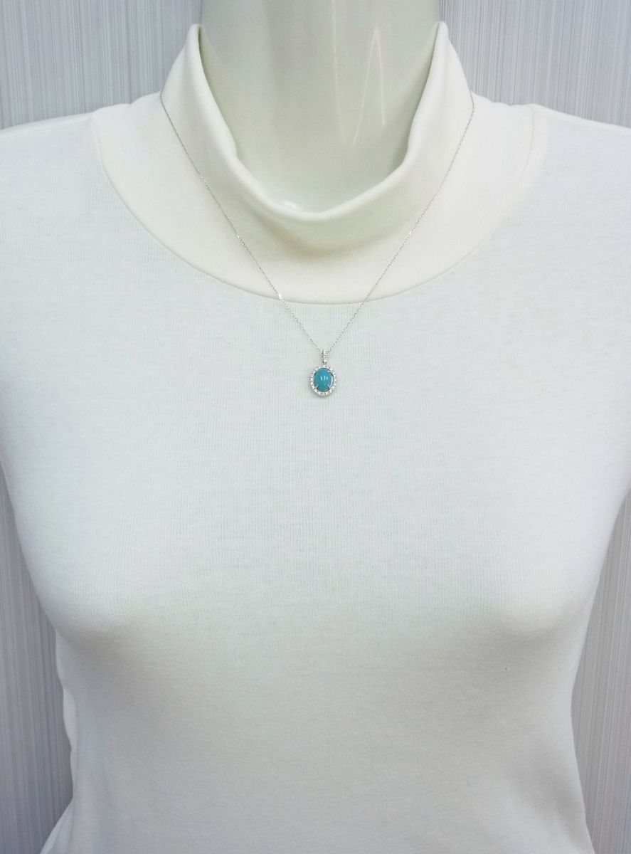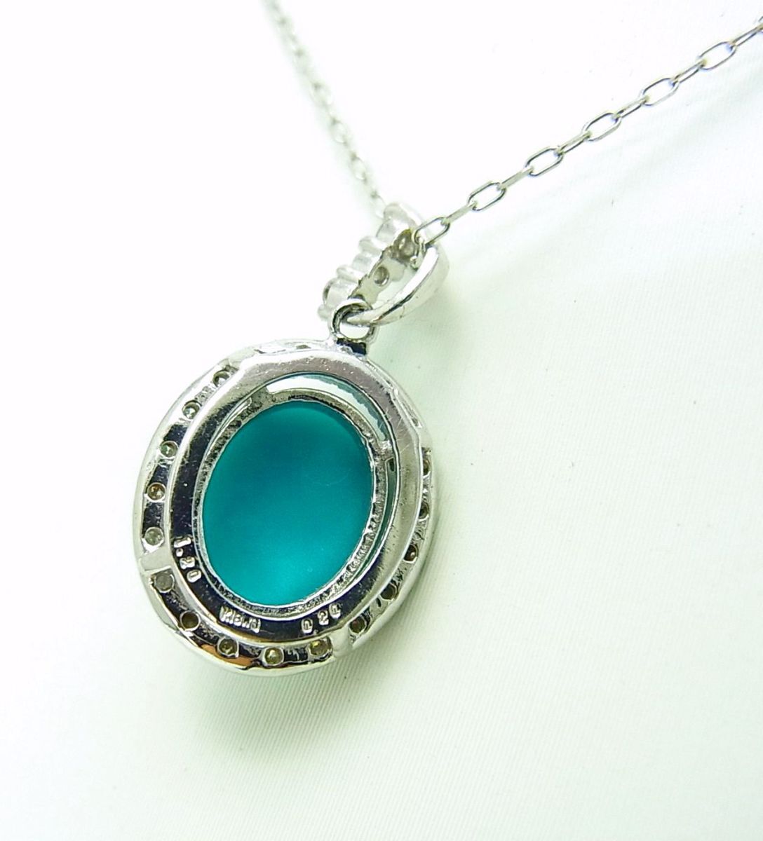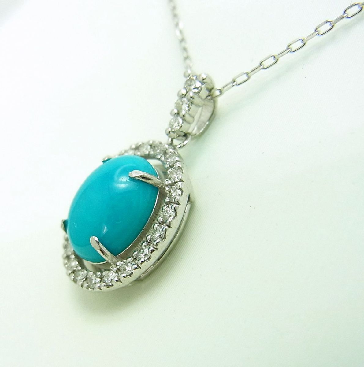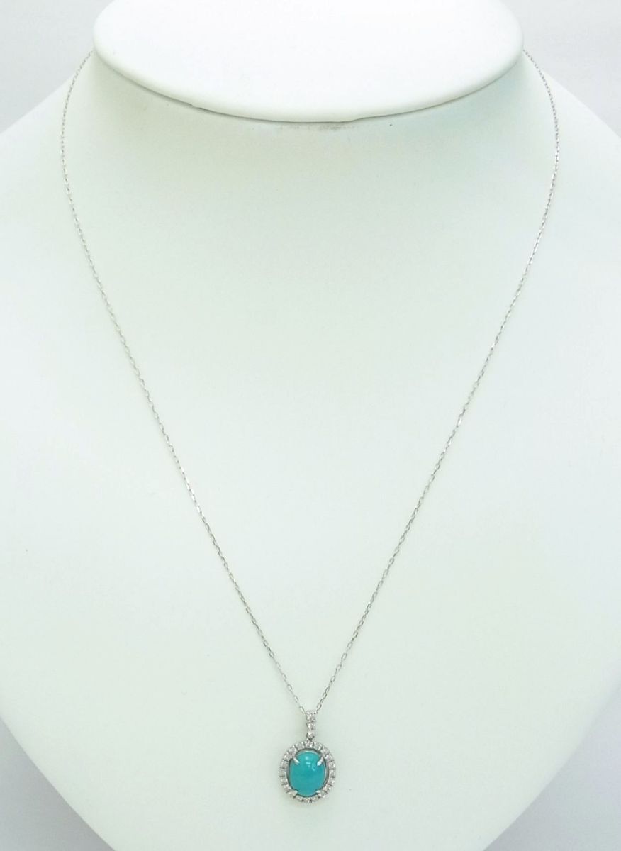 天然トルコ石 ターコイズ 1.26ct 天然ダイヤ取巻 18金ホワイト ペンダントネックレス 動画あり 送料込み