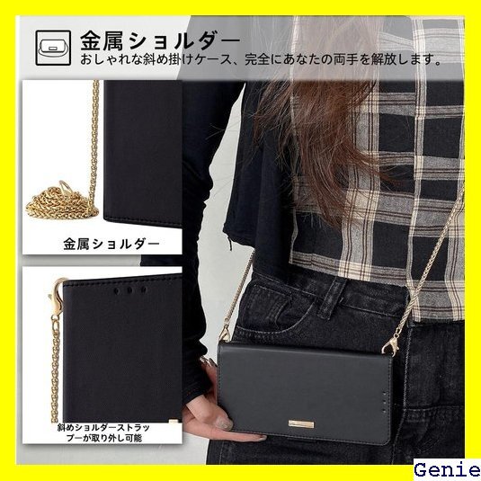 AQUOS wish4 SH-52E ケース 手帳型 ー 肩がけ ストラップ 斜め掛け スマホケース ブラック 7