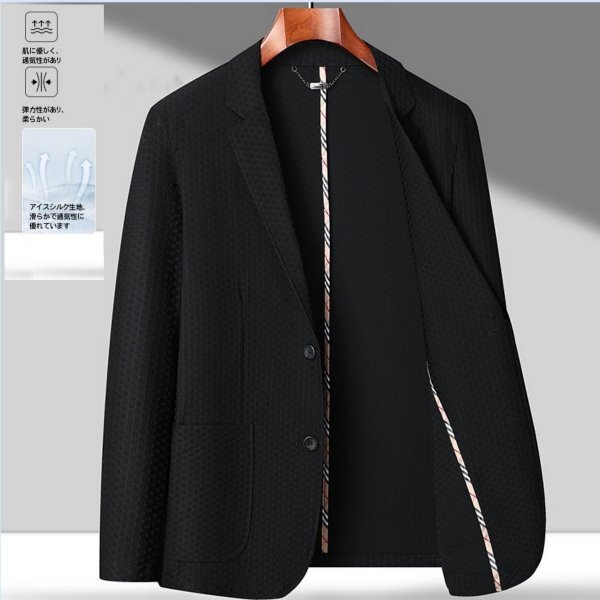 新品★未使用 サマージャケット メンズファション テーラードジャケット 春夏服 涼しい ストレッチ スーツ【MS2317】黒 2XL