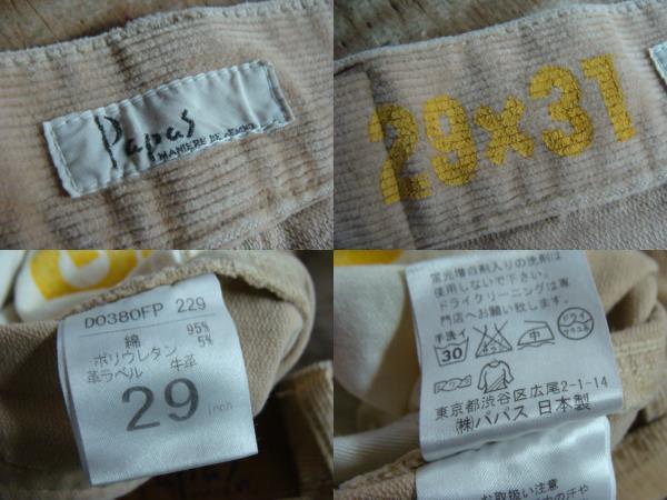 【汚れあり】PAPAS パパス コーデュロイパンツ ベージュ系 (W29) | |||||||||||