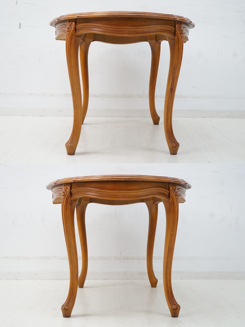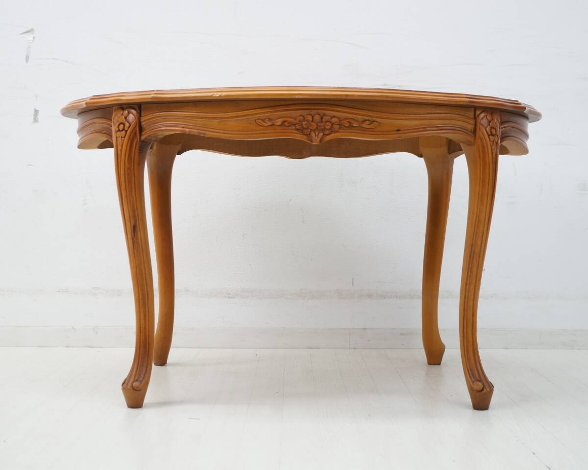 ■東ハ:【猫脚】コーヒーテーブル 幅約78×奥行約56.2㎝ 高さ約45.5㎝ ヨーロピアンテイスト クラシックインテリア リビング家具 ■ 緩やかにカーブを描く猫脚がクラシカルで美しい、 「 ヨーロピアンテイスト コーヒーテーブル 」になります。 美しい彫り装飾がエレガントな印象のコーヒーテーブルは、 お部屋を優雅で洗練された空間に演出してくれます。 【サイズ】 (約)高さ45.5 × 幅78.0 × 奥行56.2 cm 中古のお品となります。 付属品は写真にあるものが全てです。 使用に伴うシミヨゴレ・キズ・ヘコミ、脚部にヒビ割れがございます。 商品画像をよくご確認の上、ご参加ください。 [管理No.25051613R1] |