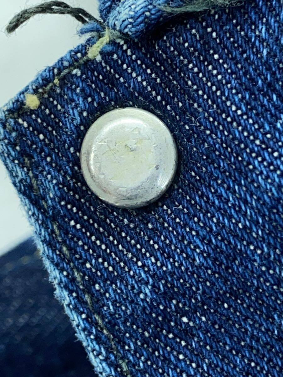 | (1)アジャスター部分のボタン3個交換あり 40s/101J/センター赤タグ/プロトタイプ/ボタン裏無刻印(ツープロング) アジャスターのボタンが交換されております。 |
