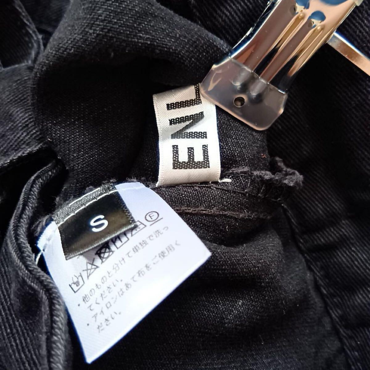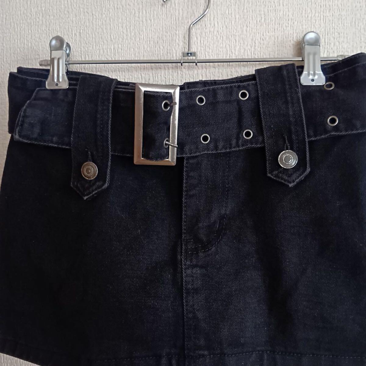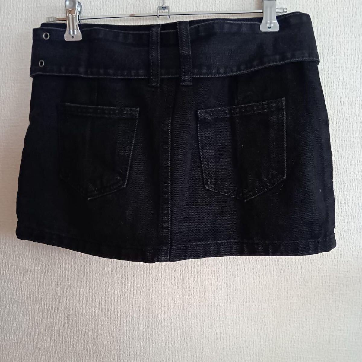 ベルト付きの黒いショートパンツ、Sサイズ、バックポケット付き。